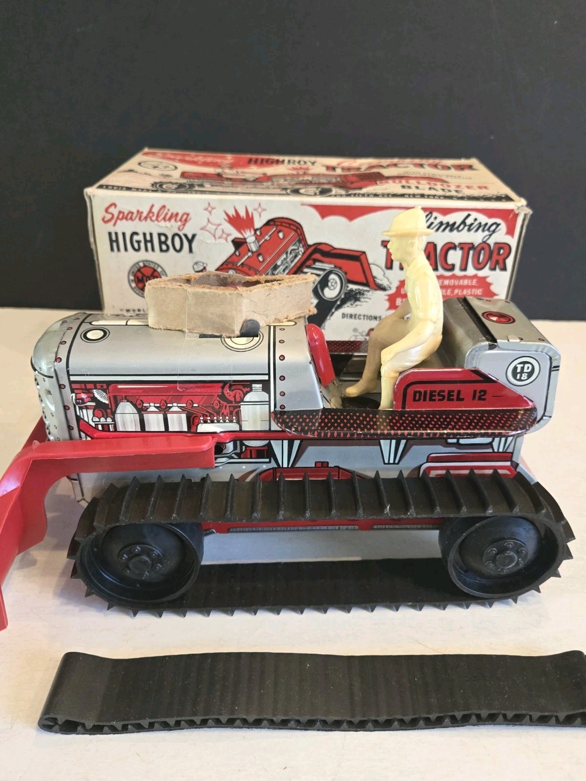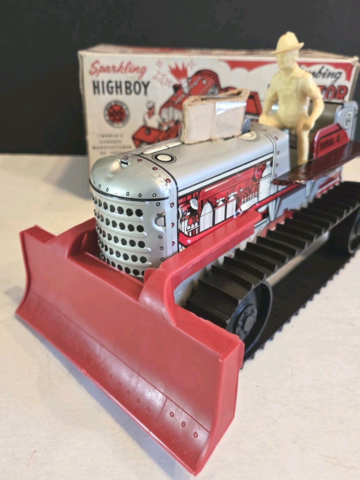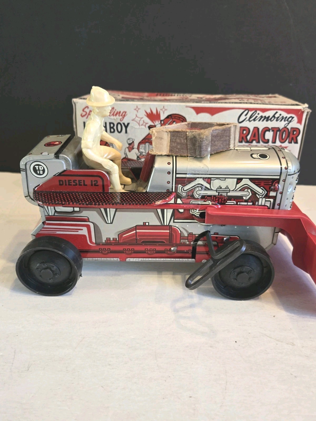 Vintage NOS Marx Windup Sparkling Highboy Climbing Tractor