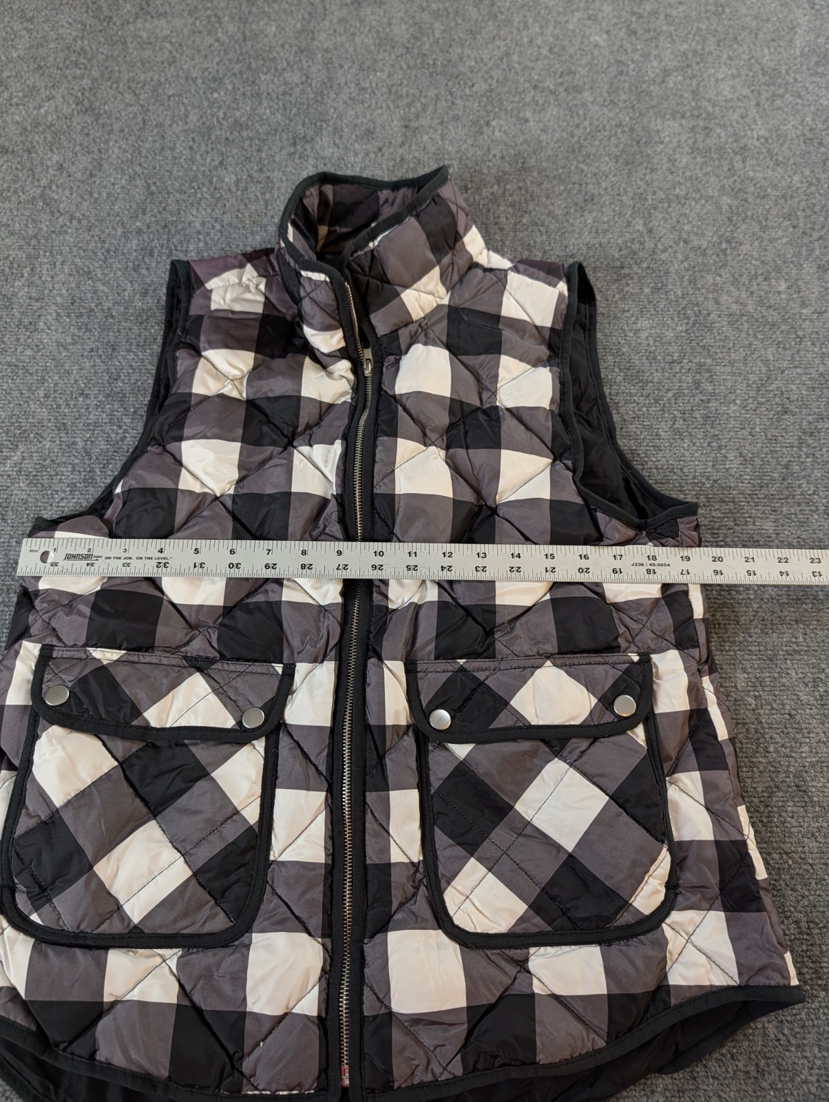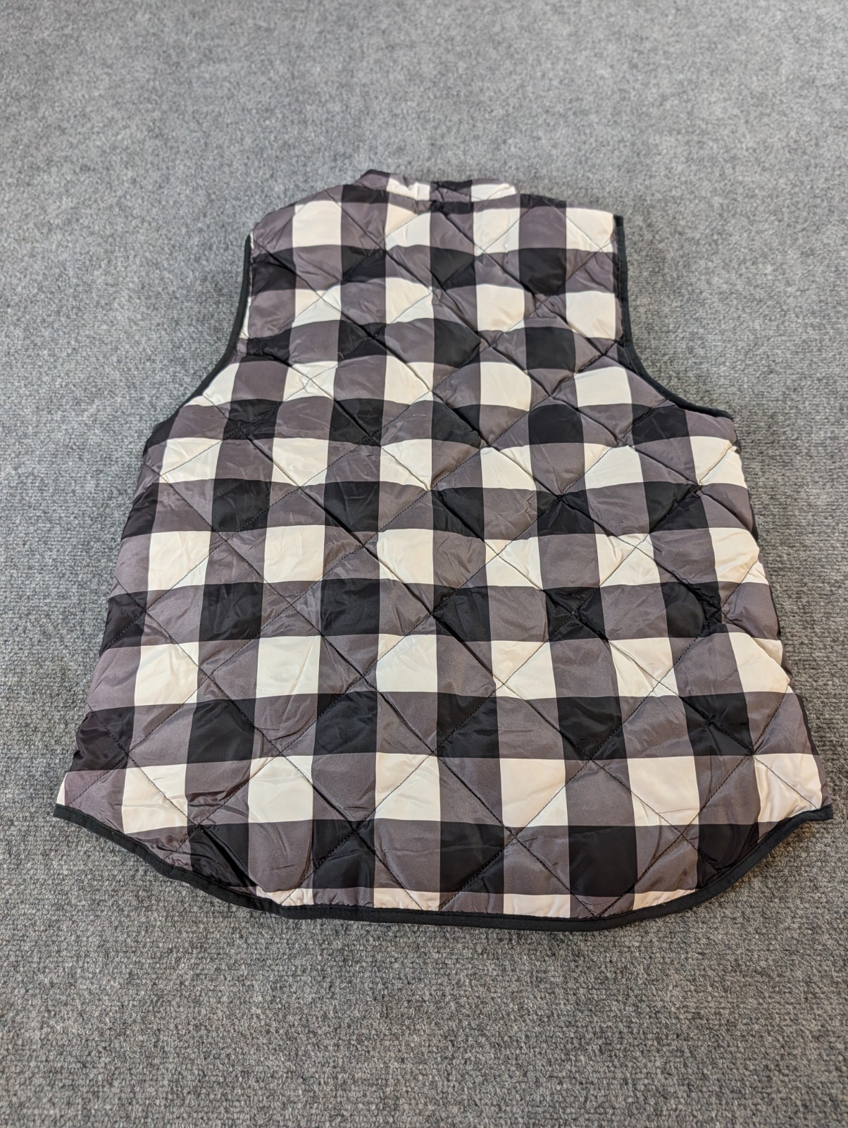 Woolrich Puffer Vest Men's L Duck Down Buffalo Plaid Quilted Zip Black White