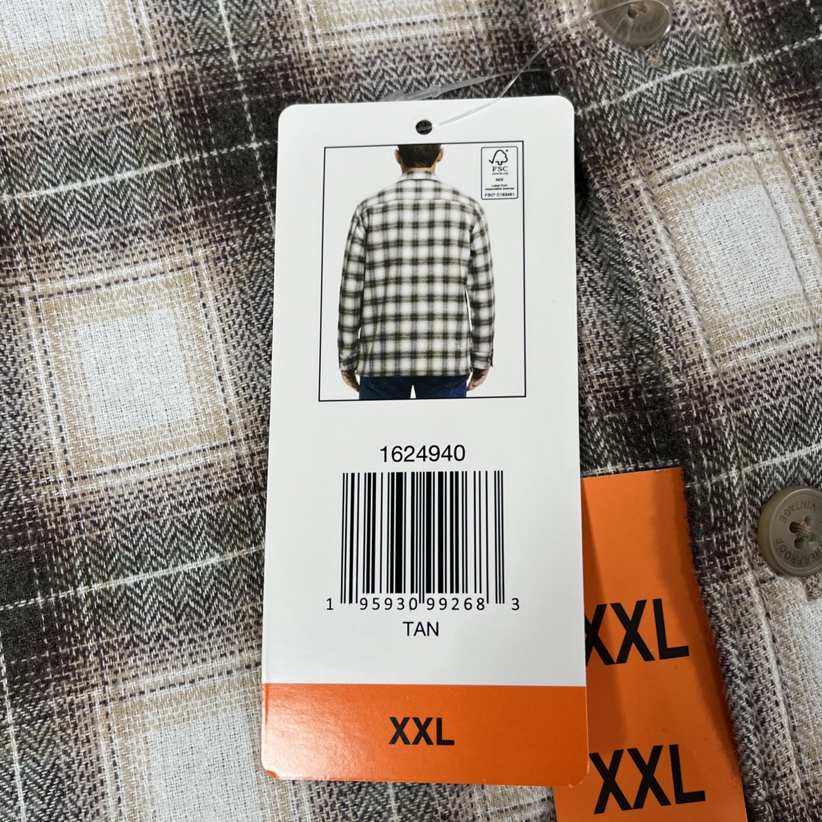 как выглядит Weatherproof Vintage Flannel Fleece Shirt Jacket, Tan Plaid, Mens 2XL XXL, NEW фото