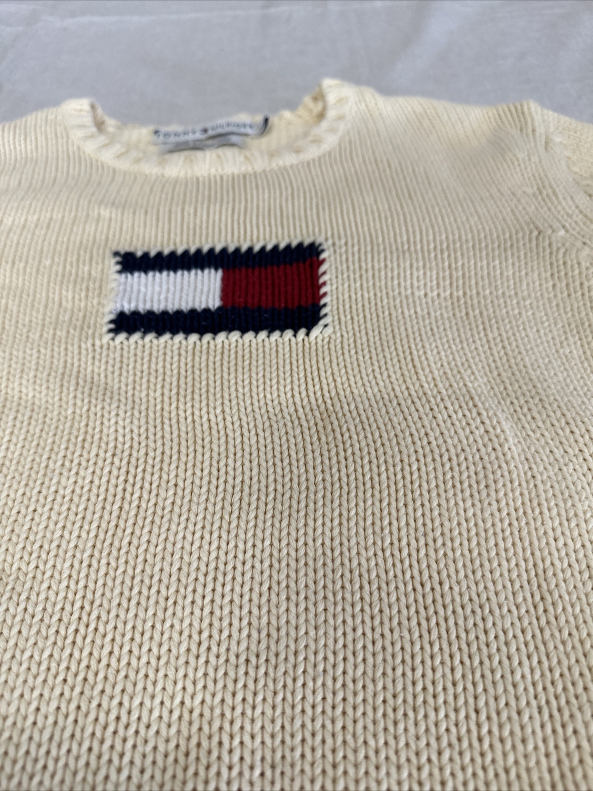 TOMMY HILFIGER Flag Sweater Cotton Unisex L Knit Cream