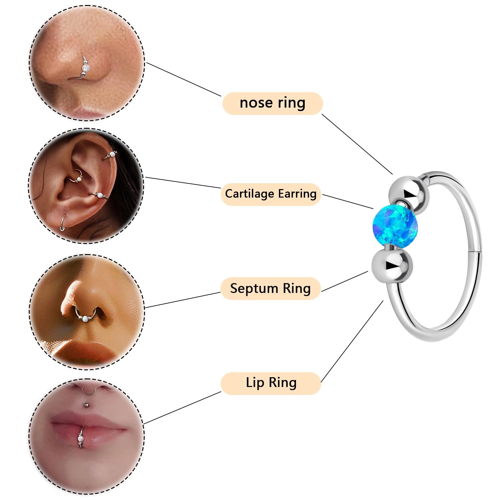 Thiswhyimbeauty 2PCS 18g Opal Nose Rings for 20G-8 10mm, B-Silver Blue opal