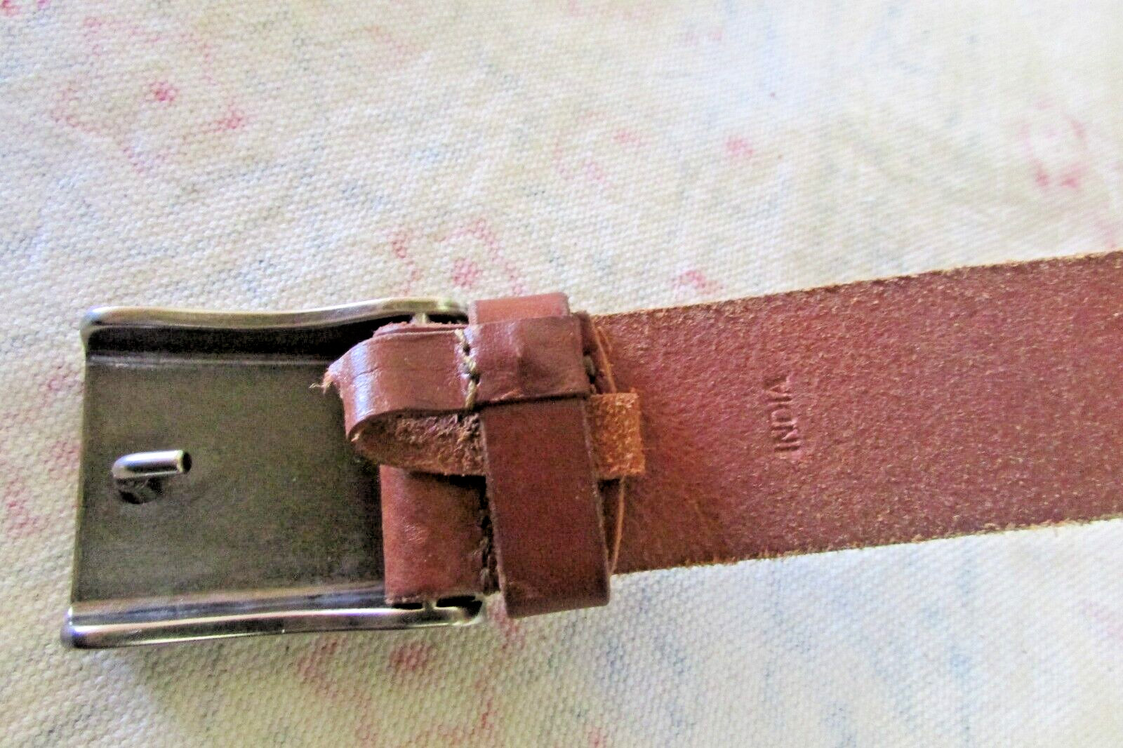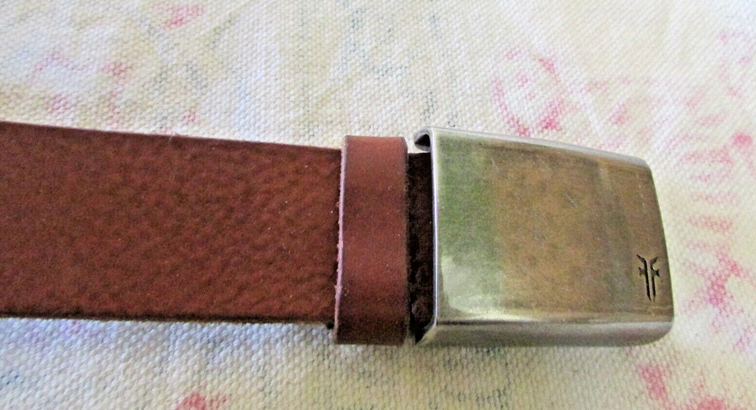 как выглядит NEW FRYE 40 BROWN FLEXIBLE LEATHER BELT DULL SILVER-TONE SIGNATURE BUCKLE фото