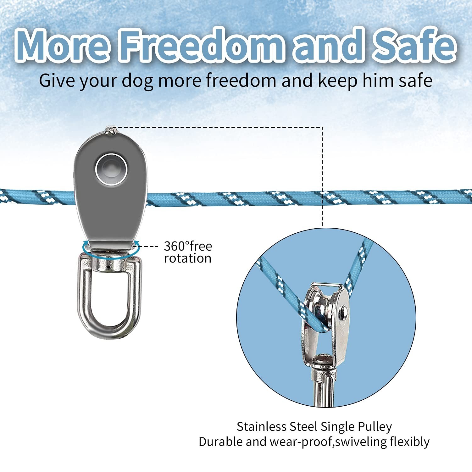 Dog Runner for Yard with Trolley Camping Line Dogs Run Cable Dog Zipline for ...