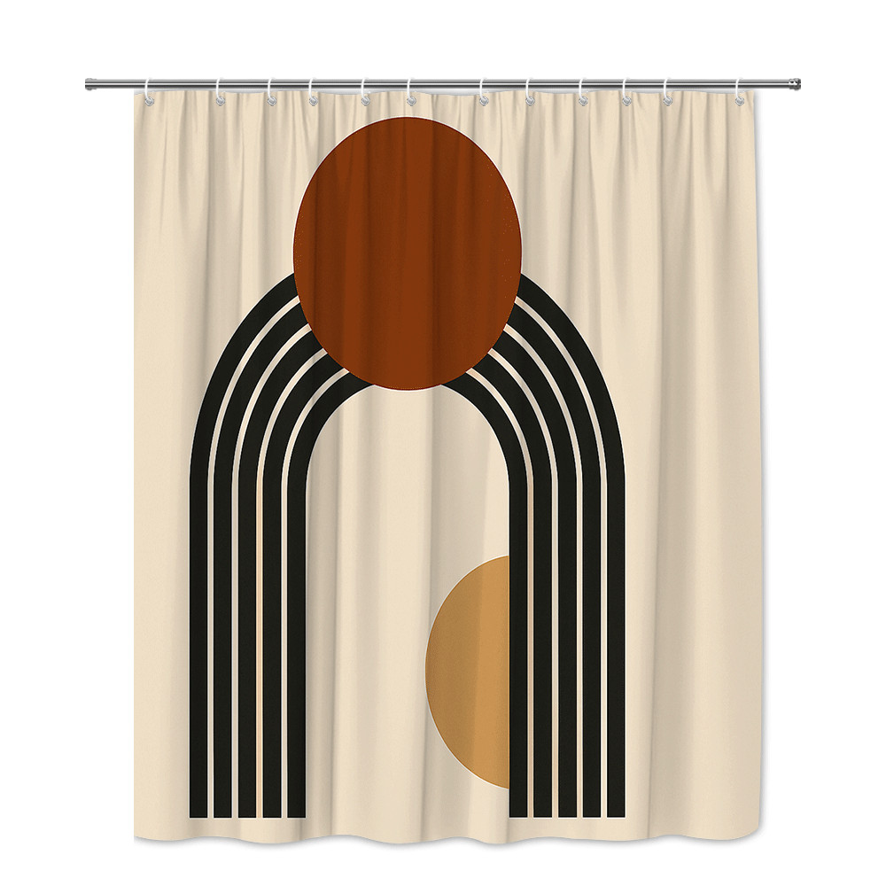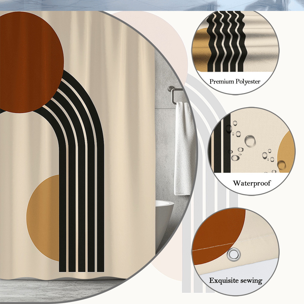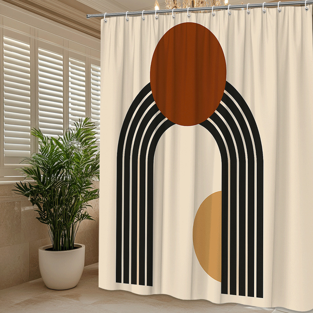 как выглядит Modern Abstract Shower Curtain in Warm Tones and Geometric Design фото