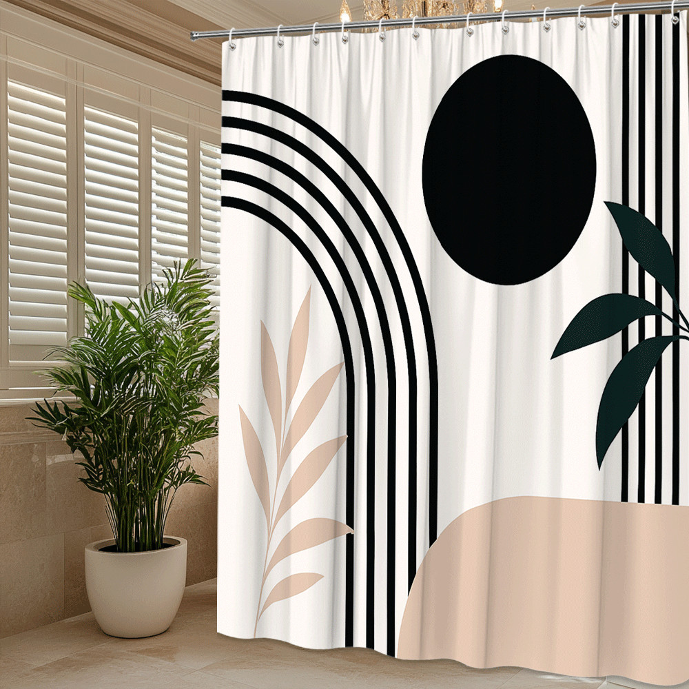 Stylish Black and Beige Shower Curtain with Minimalist Design