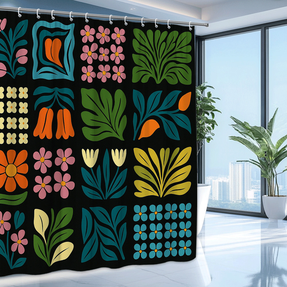 Boho Floral Shower Curtain for Modern Bathroom Decor