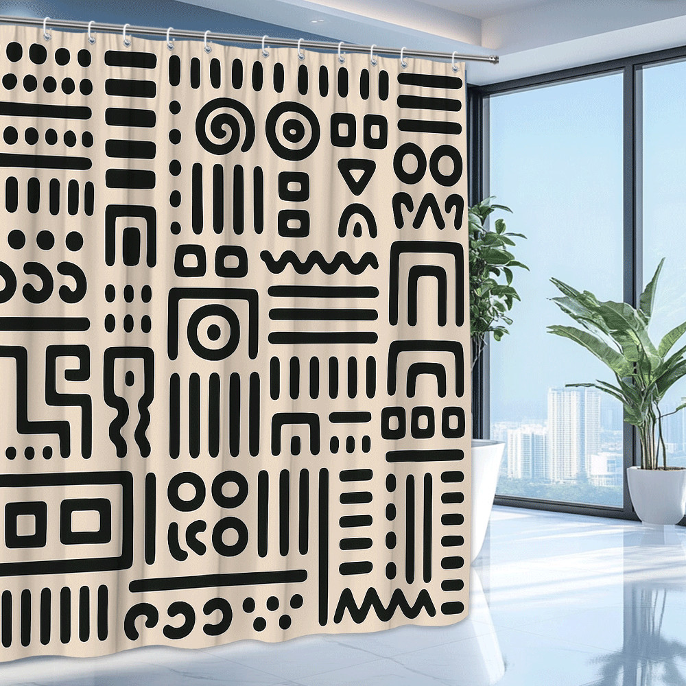Abstract Black and White Shower Curtain, Modern Design for Bathroom