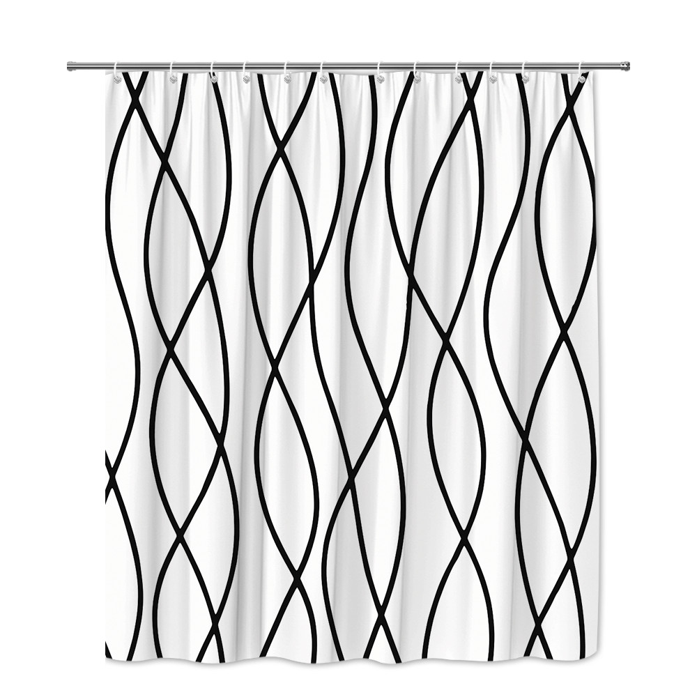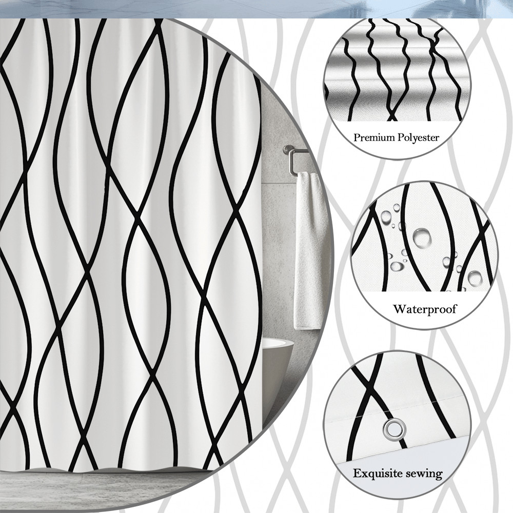 Elegant Black and White Wavy Shower Curtain for Modern Bathrooms