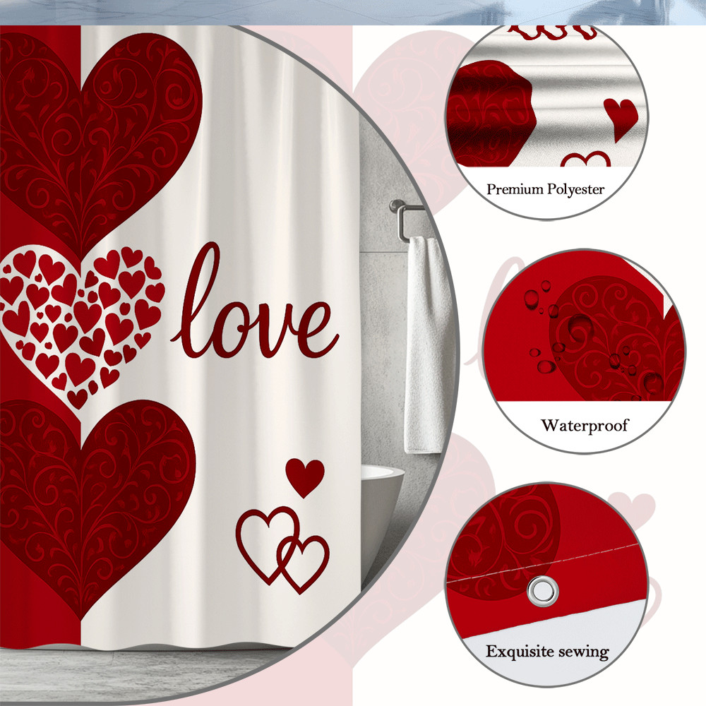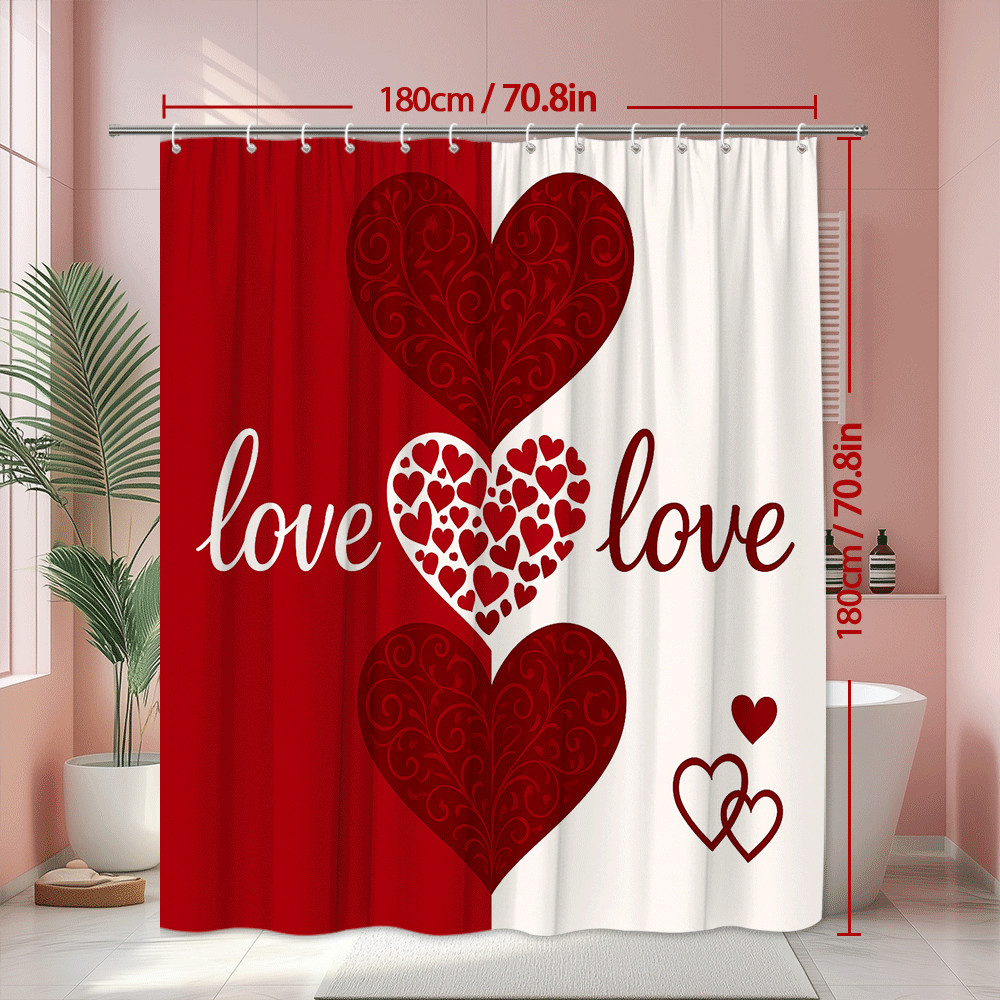 как выглядит Love Hearts Red Shower Curtain for Valentine