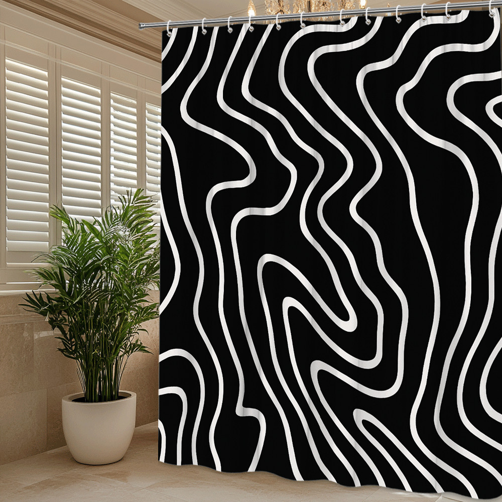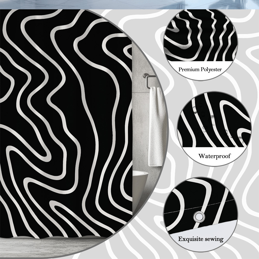 Modern Black White Shower Curtain with Wave Pattern Design