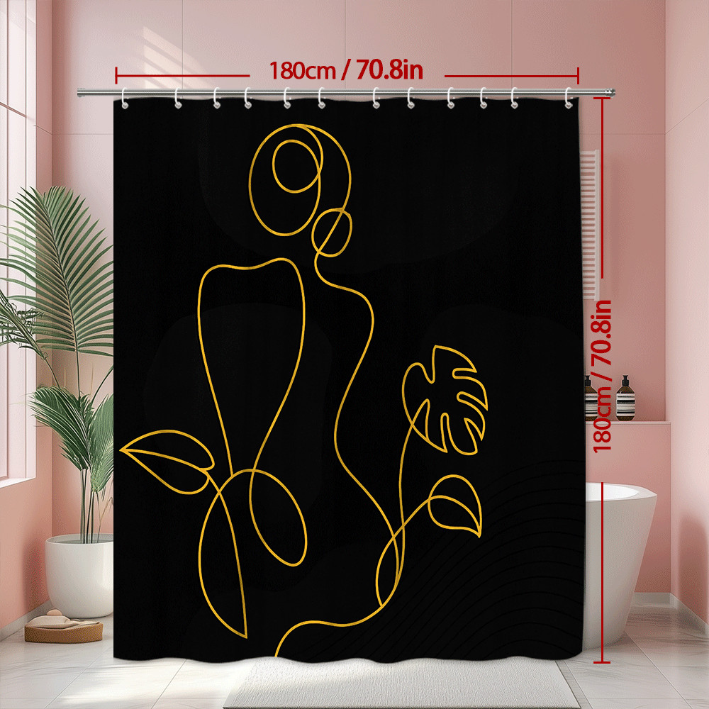 как выглядит Modern Black Shower Curtain with Yellow Line Art Design фото