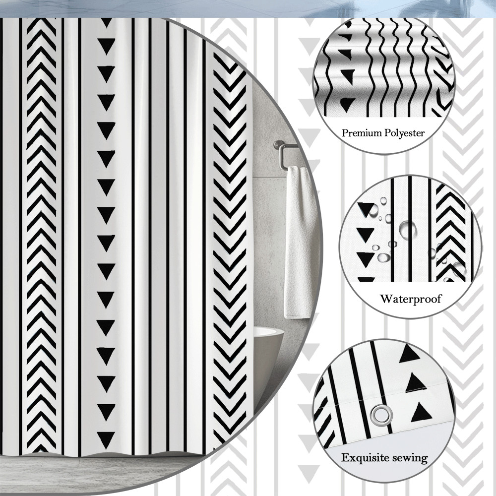 как выглядит Black and White Modern Shower Curtain with Geometric Pattern фото