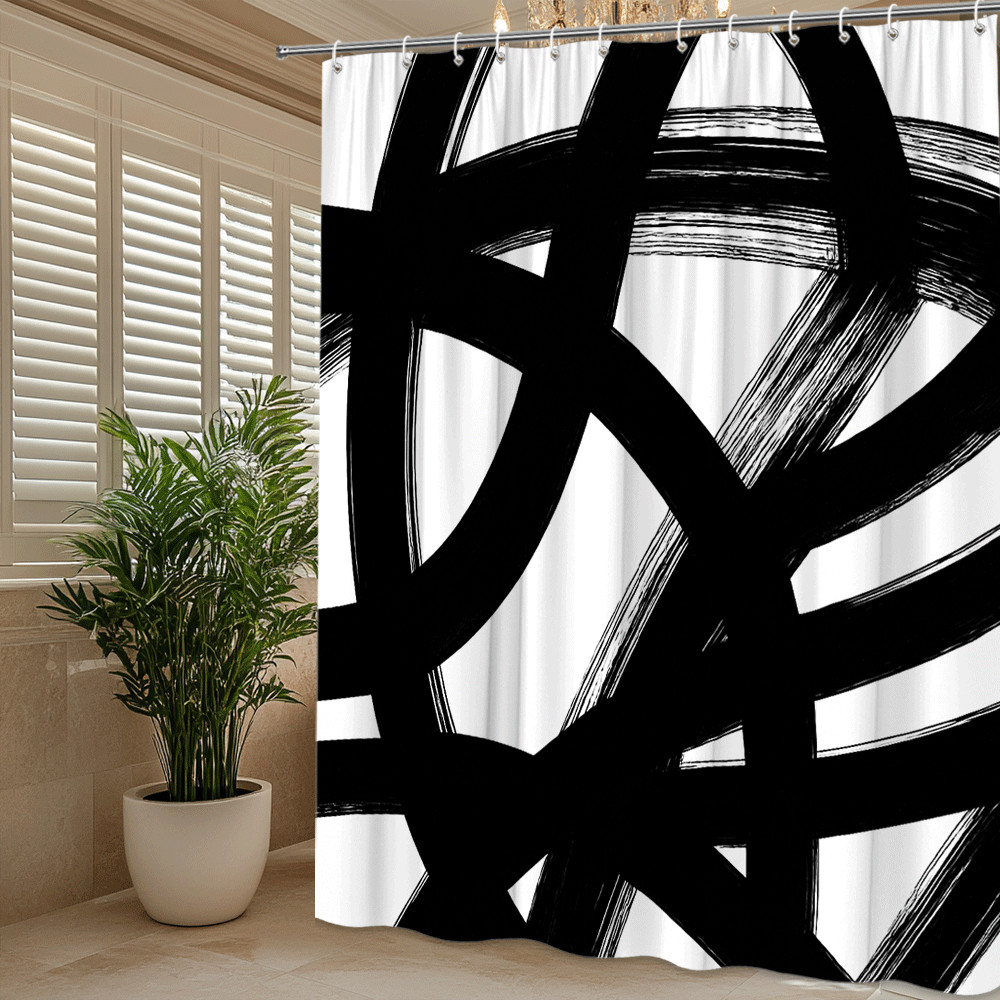 Black Abstract Shower Curtain for Modern Bathroom Decor