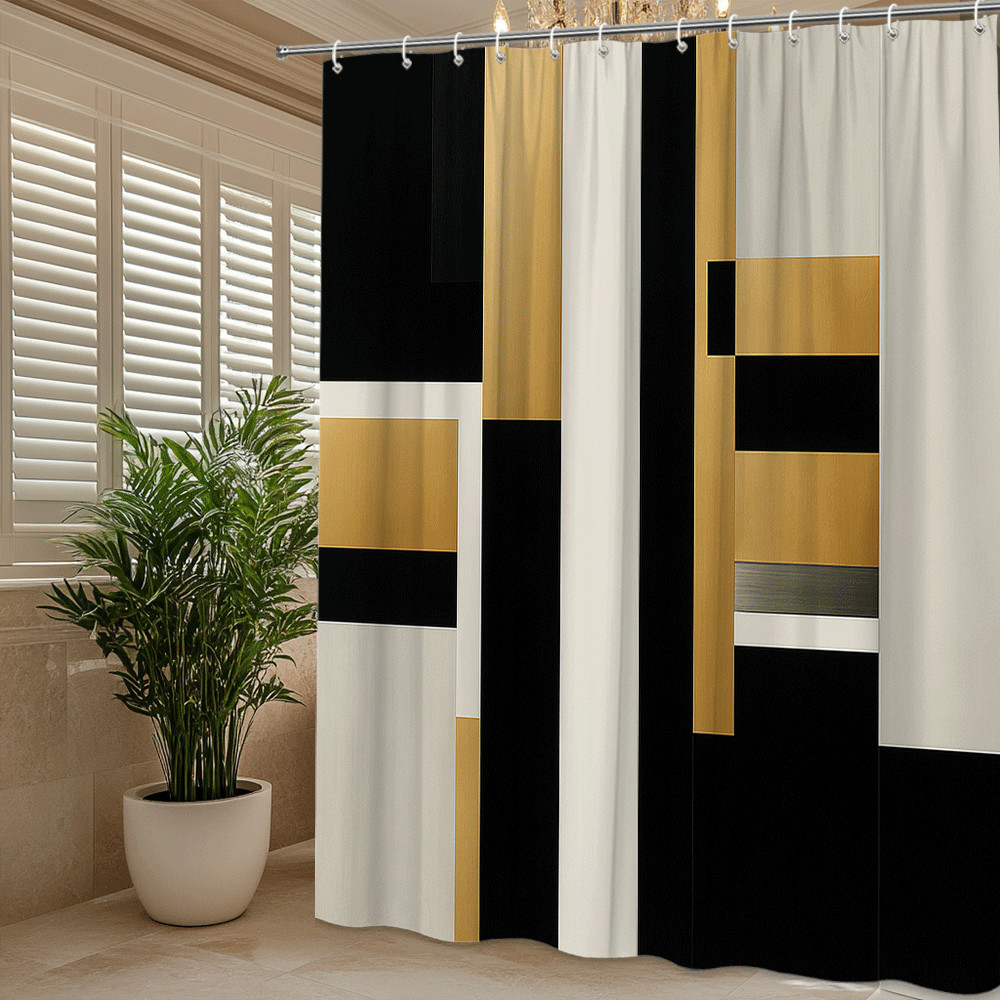 Stylish Black and Gold Geometric Shower Curtain for Modern Bathrooms