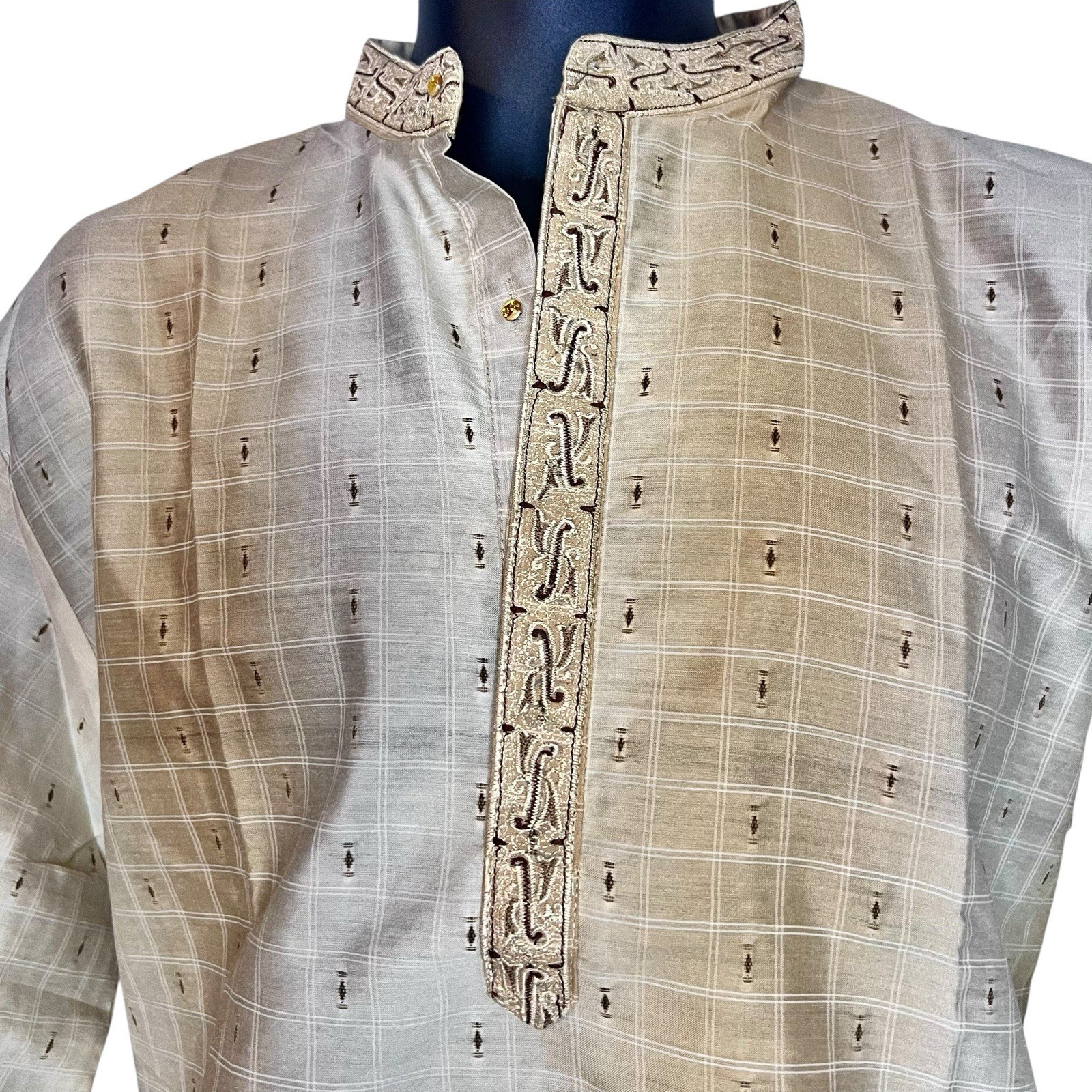 Muslim Mid East African Style Men Beige Two Piece Top Bottom