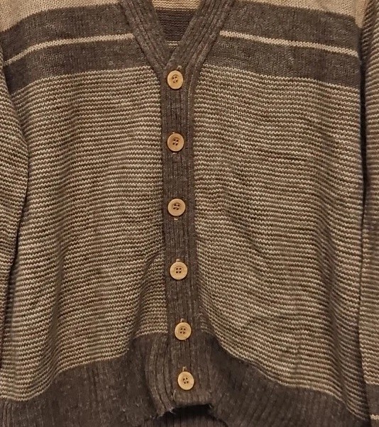 Vintage Grandpa Core Claude Brentwood Cardigan XL Made USA Brown Stripe 70s