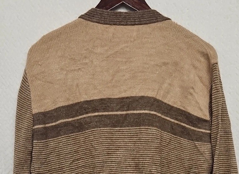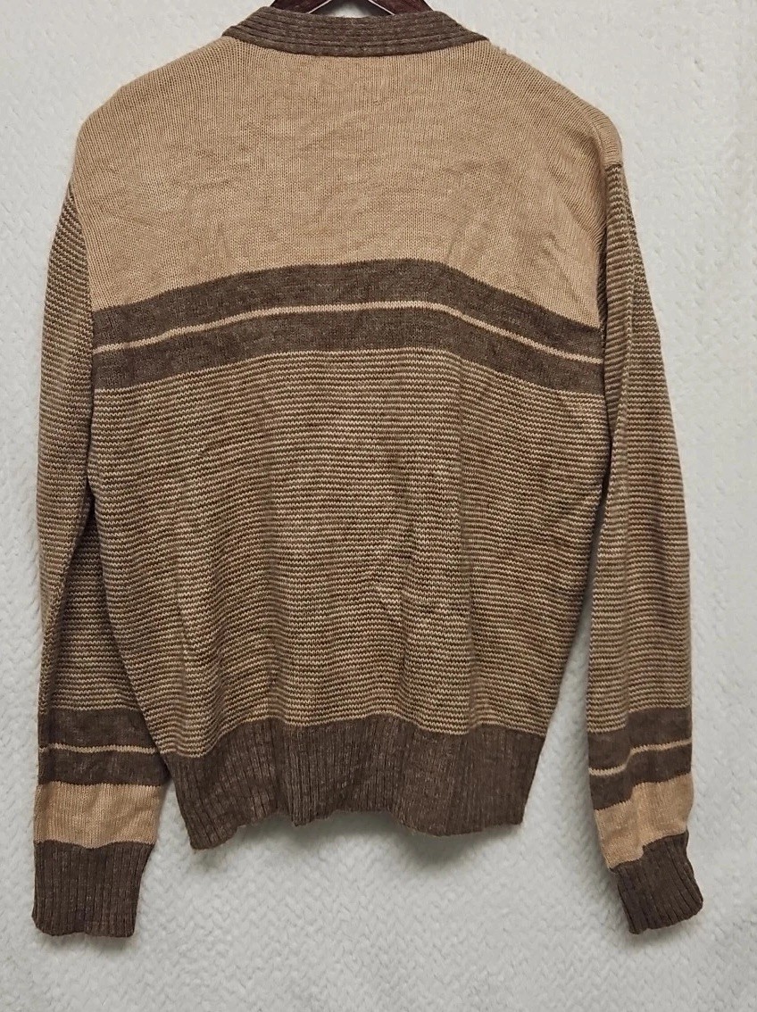 как выглядит Vintage Grandpa Core Claude Brentwood Cardigan XL Made USA Brown Stripe 70s фото