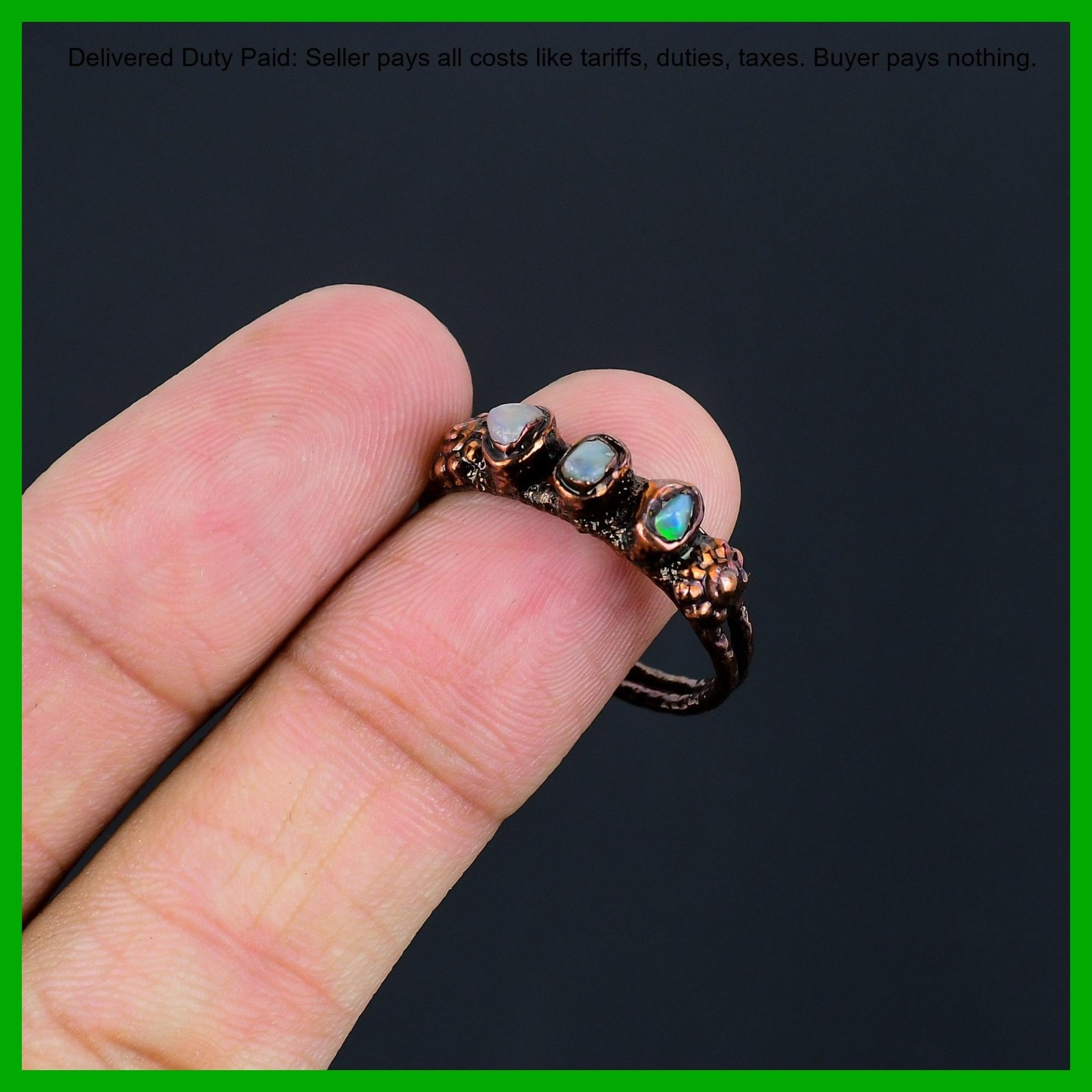 как выглядит Copper Ethiopian Opal Gemstone Wedding Stackable Electroformed Anniversary Ring фото