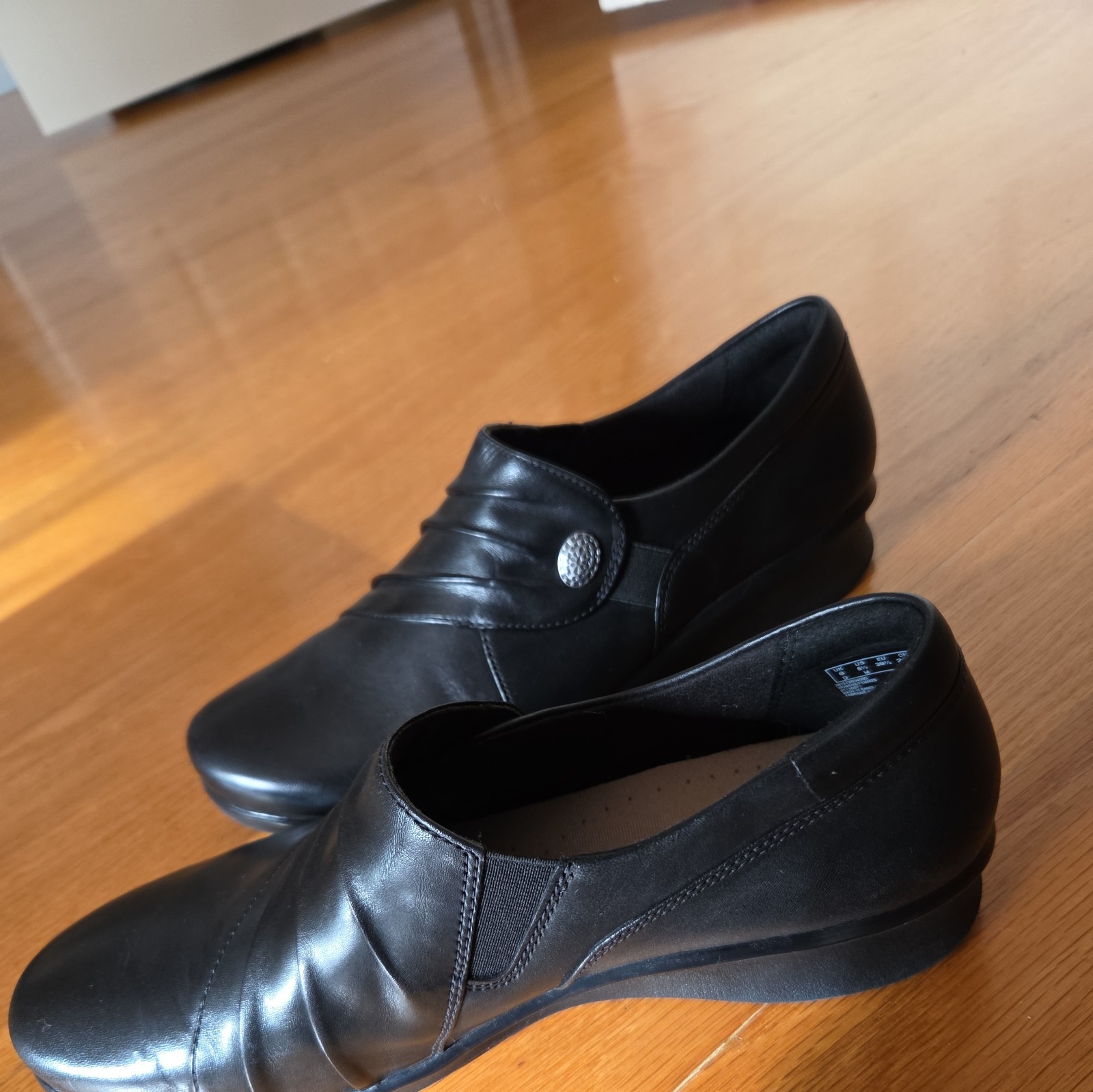 как выглядит Clarks Collection Bendables Women s Black Leather Slip On Loafer Shoes - 8.5 фото