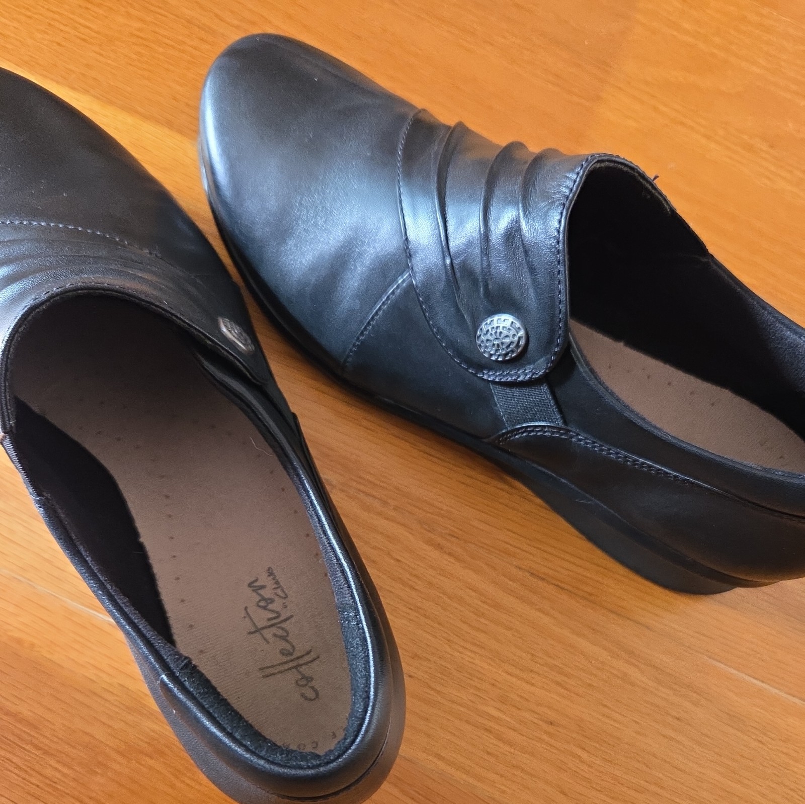 Clarks Collection Bendables Women s Black Leather Slip On Loafer Shoes - 8.5