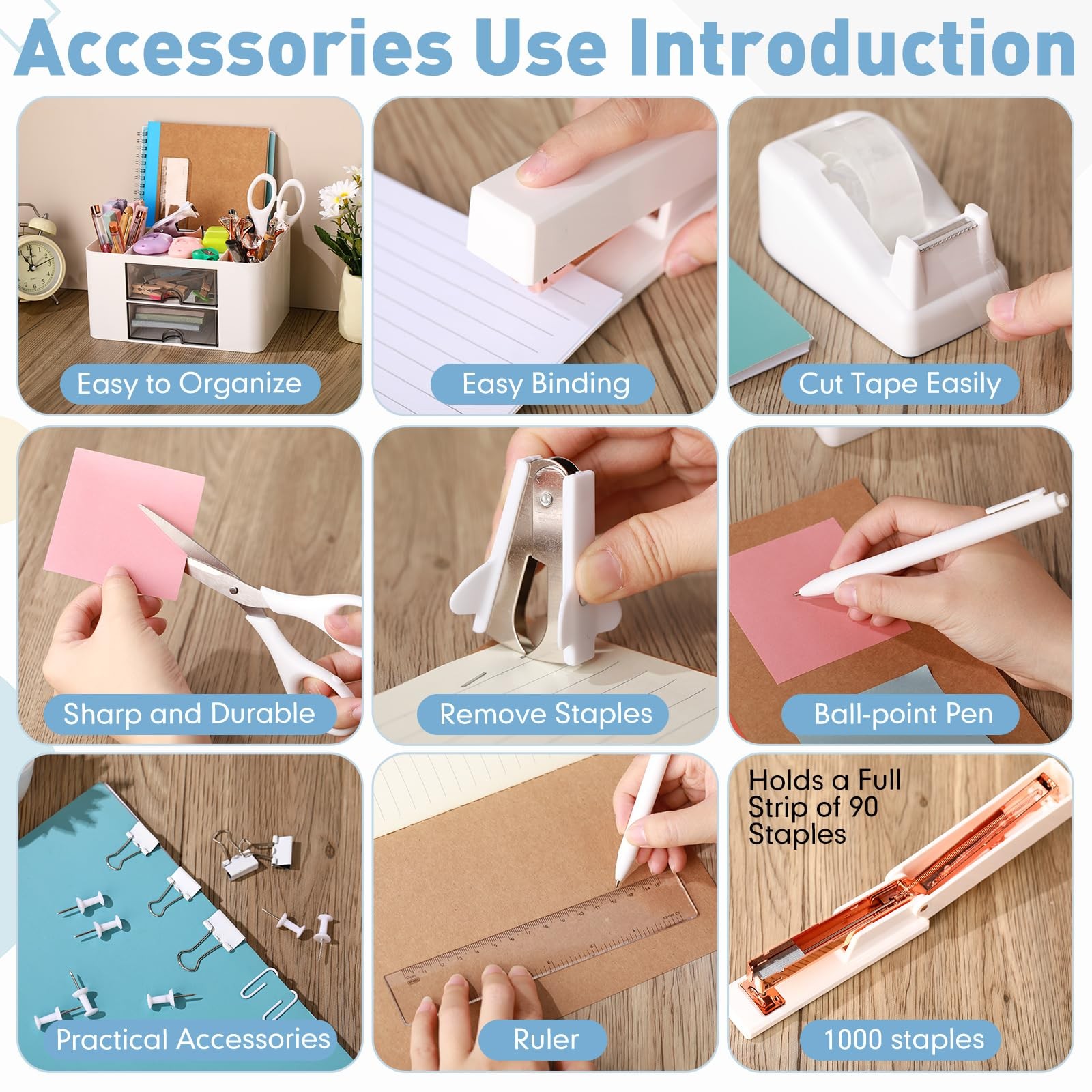 11 Pcs White Office Supplies Set Multi-functional Pen Organizer and Accessori...