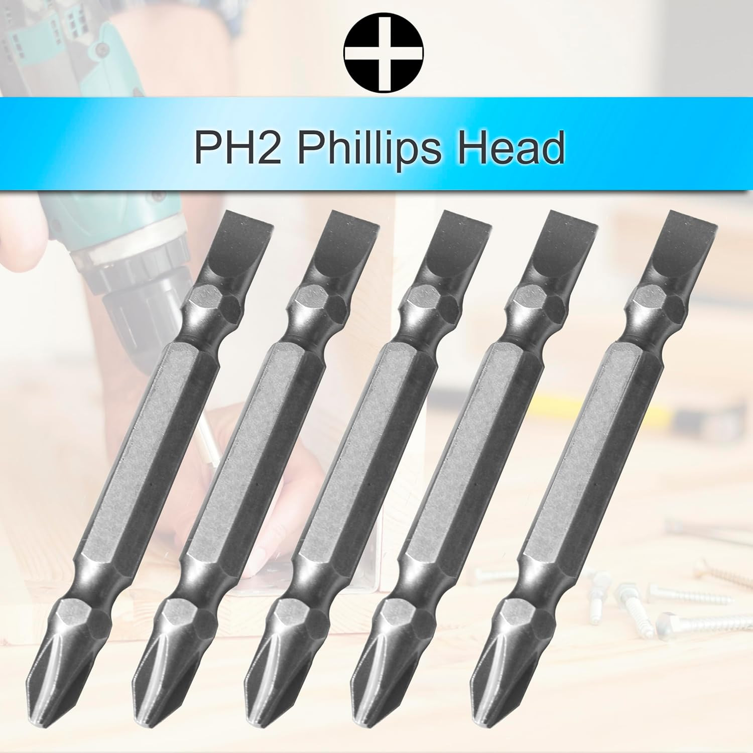 5Pcs PH2/SL6 Phillips and Slotted Flathead Double Ended Screwdriver Bits Magneti