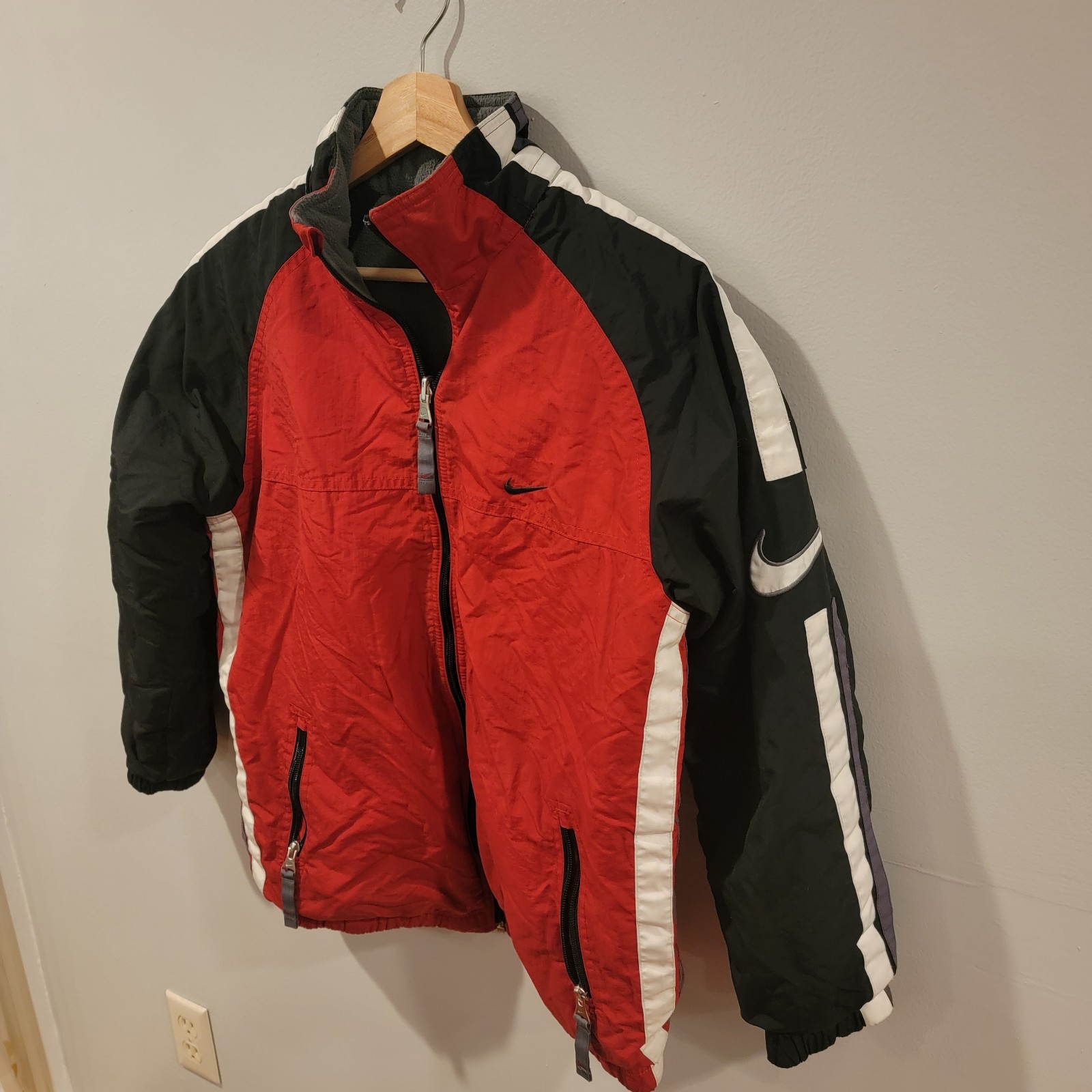 Vintage Nike Coat Youth Size Large 14-16 Red Black Gray Reversible Jacket Y2K