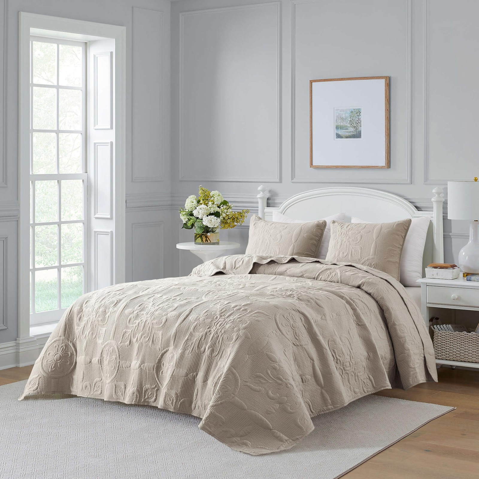 как выглядит B2EVER Beige Damask Quilt Twin Size Bedding Sets with 1 Pillow Sham, Boho Bedspr фото