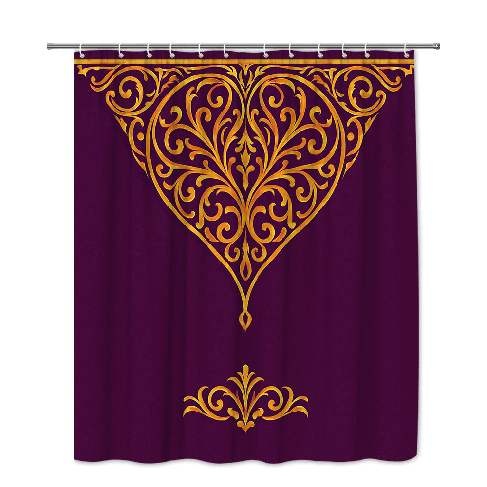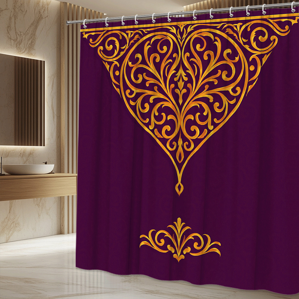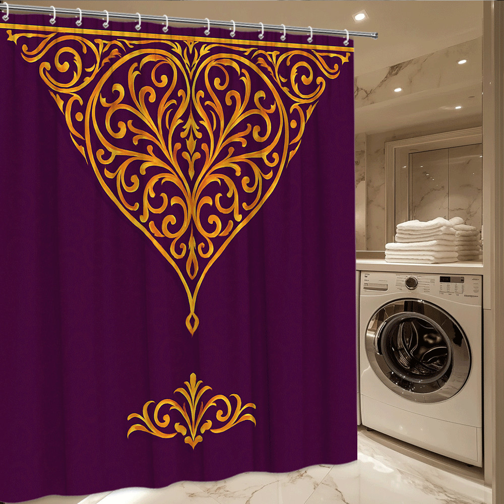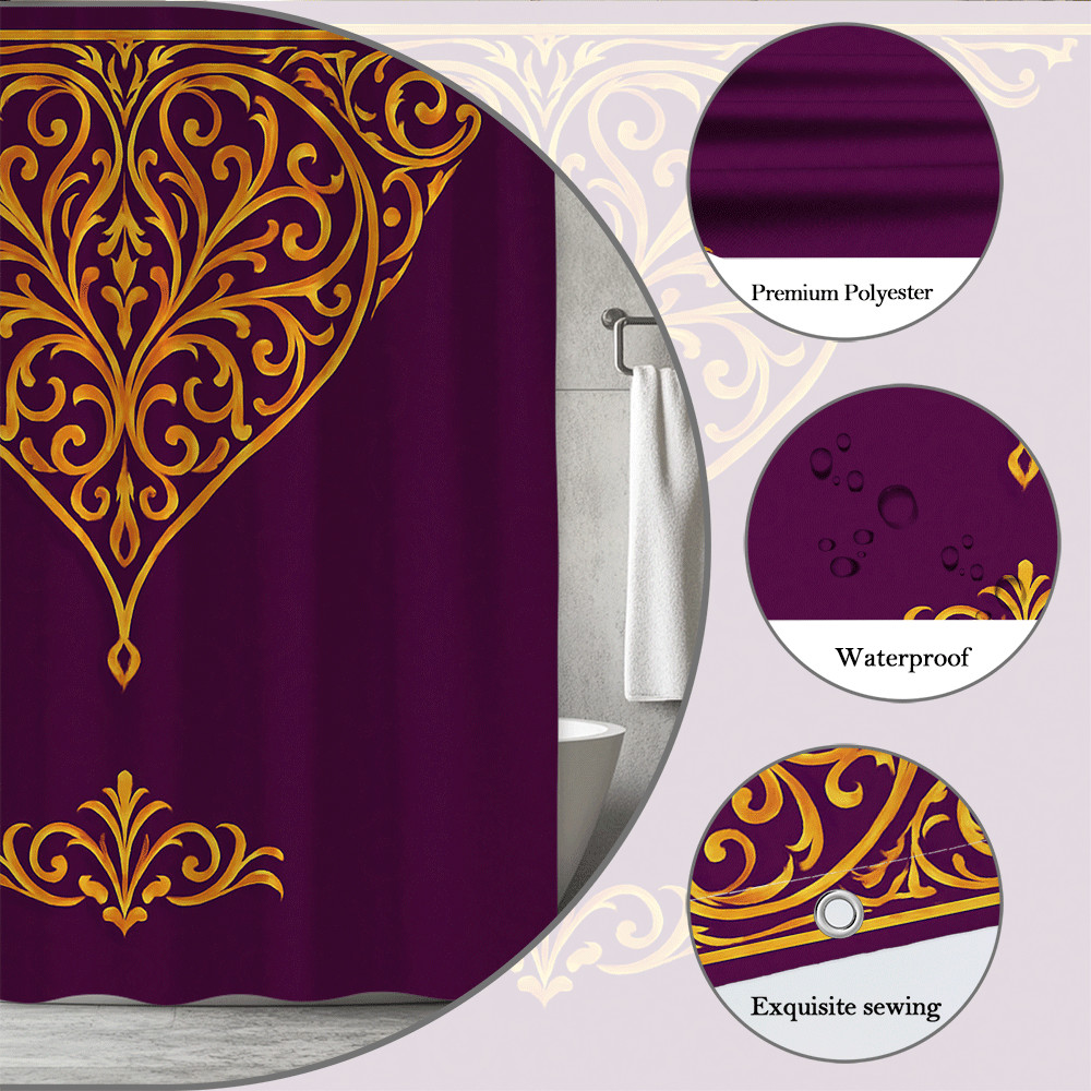 Elegant Purple and Gold Shower Curtain with Floral Design