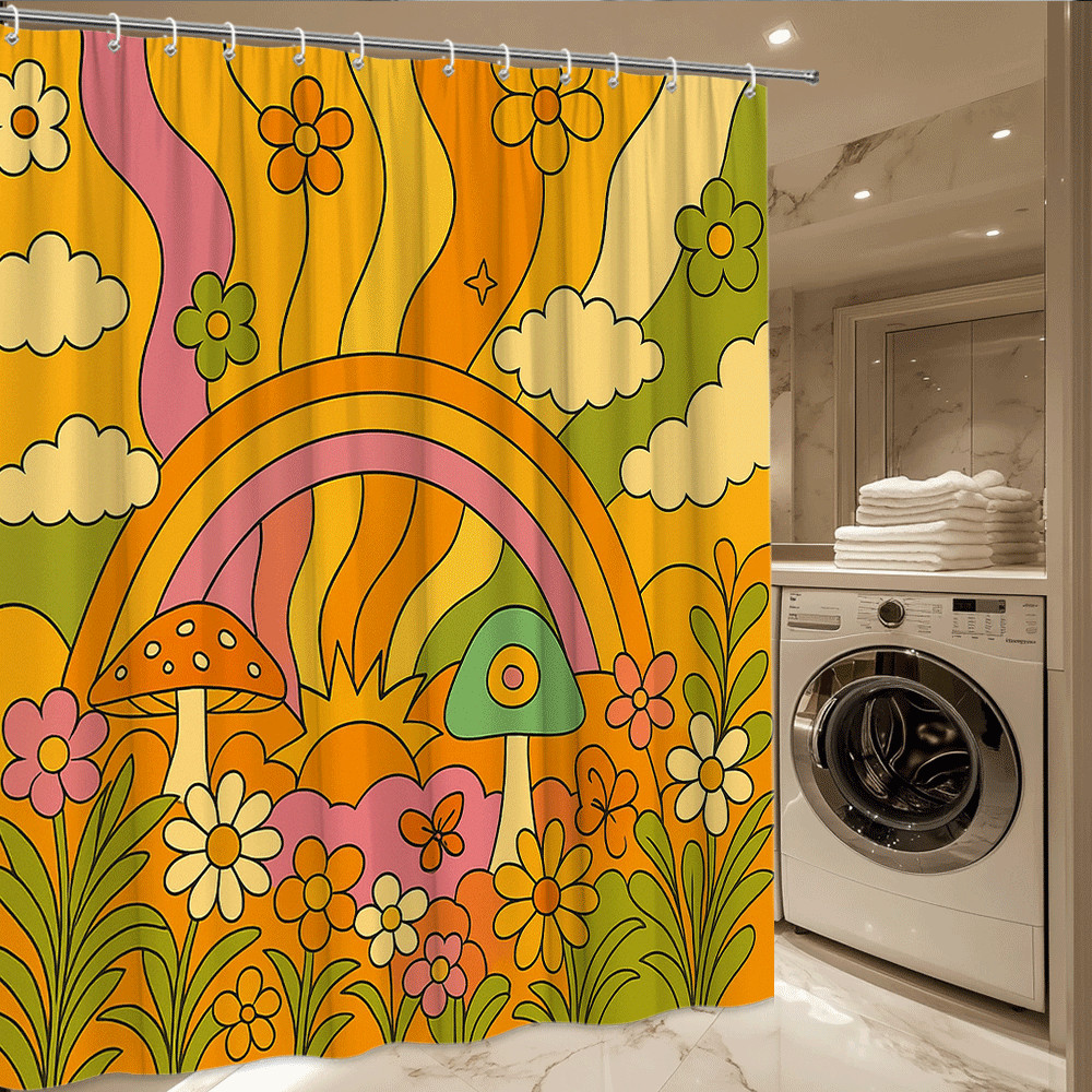 Vintage Rainbow Floral Shower Curtain - Colorful Retro Design