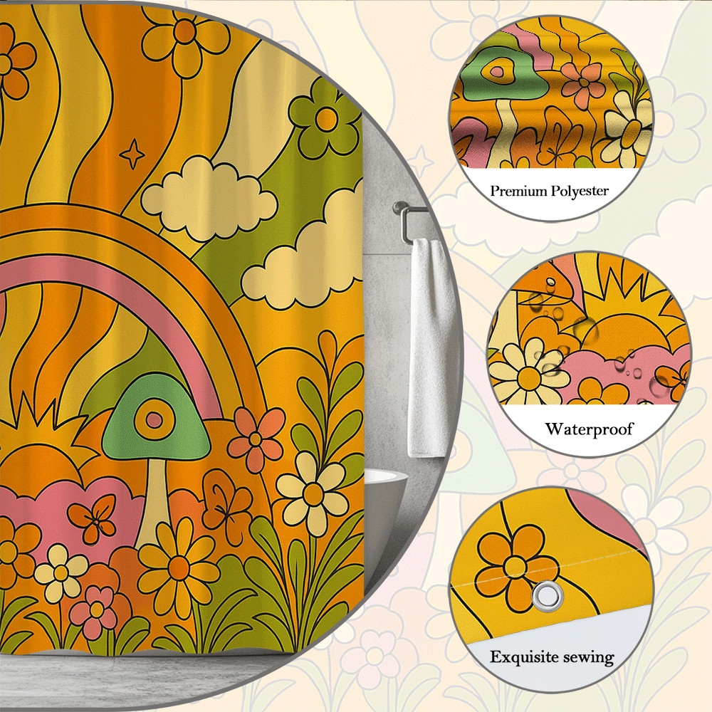 как выглядит Vintage Rainbow Floral Shower Curtain - Colorful Retro Design фото