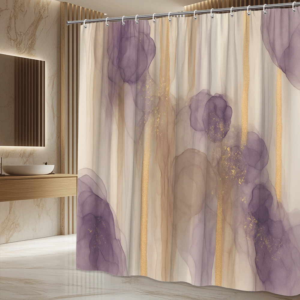 Elegant Purple and Gold Shower Curtain for Modern Bathrooms