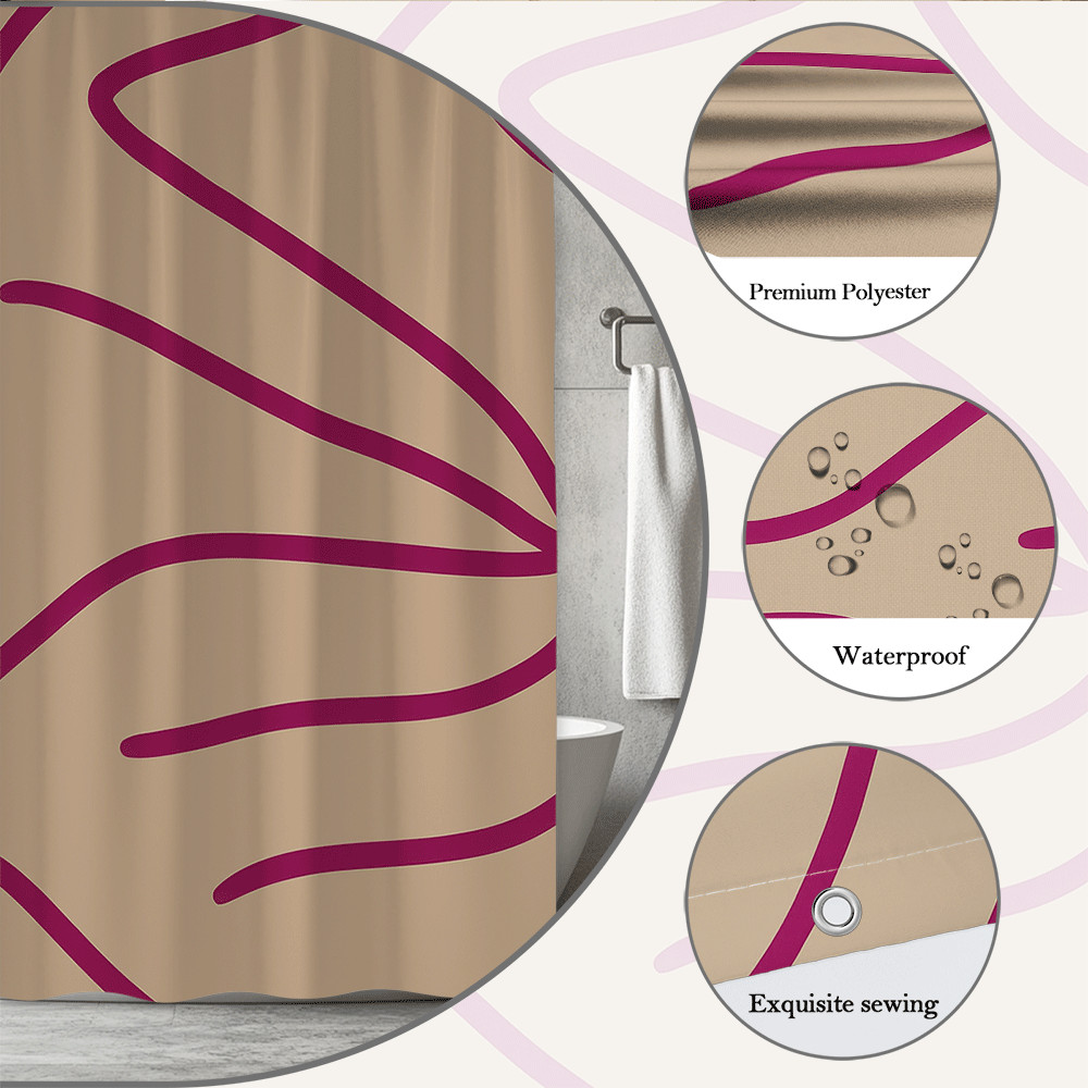Modern Abstract Shower Curtain in Beige with Dark Lines