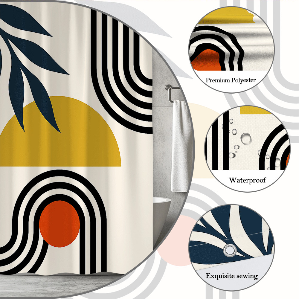 Modern Boho Shower Curtain with Abstract Design and Colorful Patterns