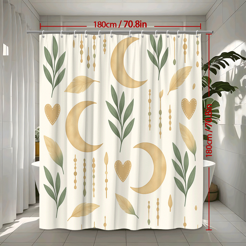 Boho Floral Shower Curtain with Leaves and Moons Design