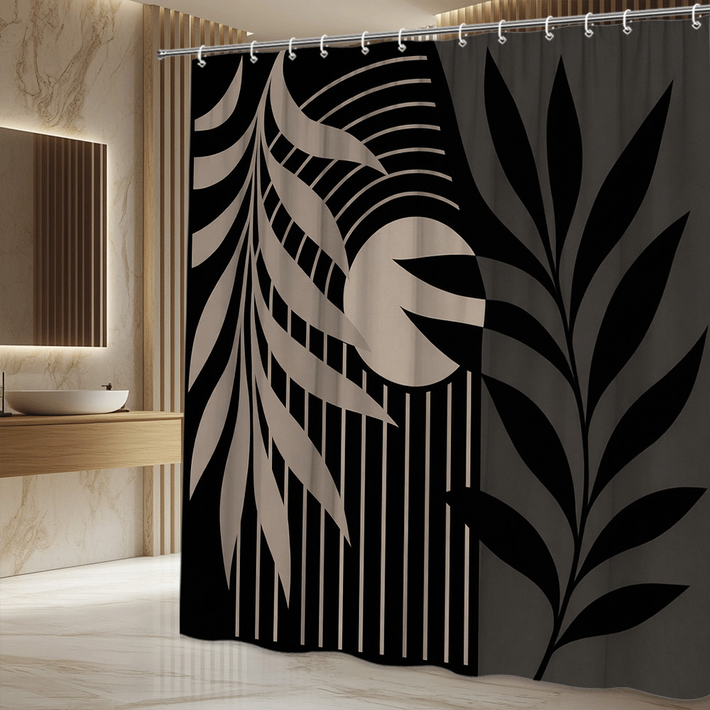 Modern Black and Beige Shower Curtain with Leaf Design