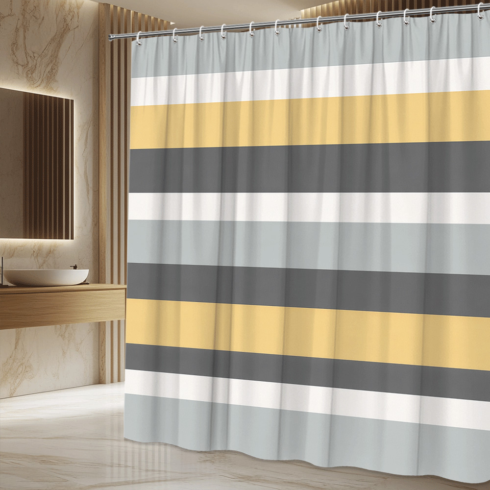 Stylish Grey and Yellow Striped Shower Curtain for Modern Bathrooms