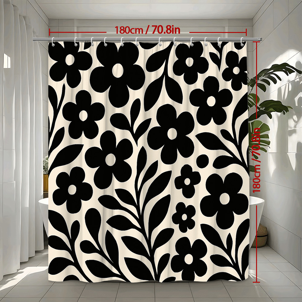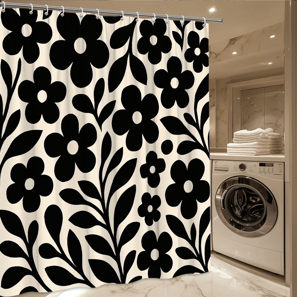 Black Floral Shower Curtain, Modern Bathroom Decor