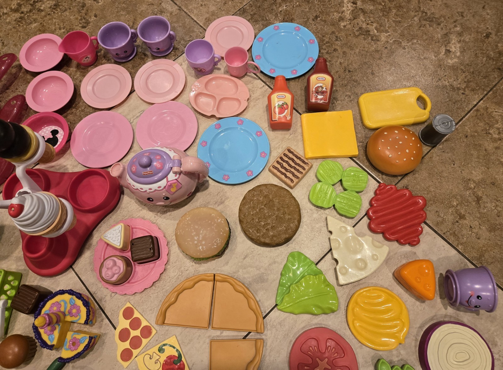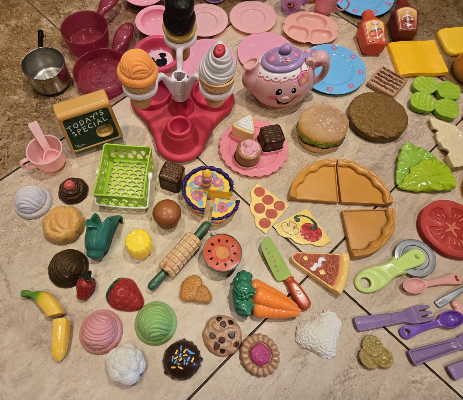 как выглядит Large Mixed Lot Vintage Pretend Plastic Play Kitchen Food Accessories Mix Toys фото
