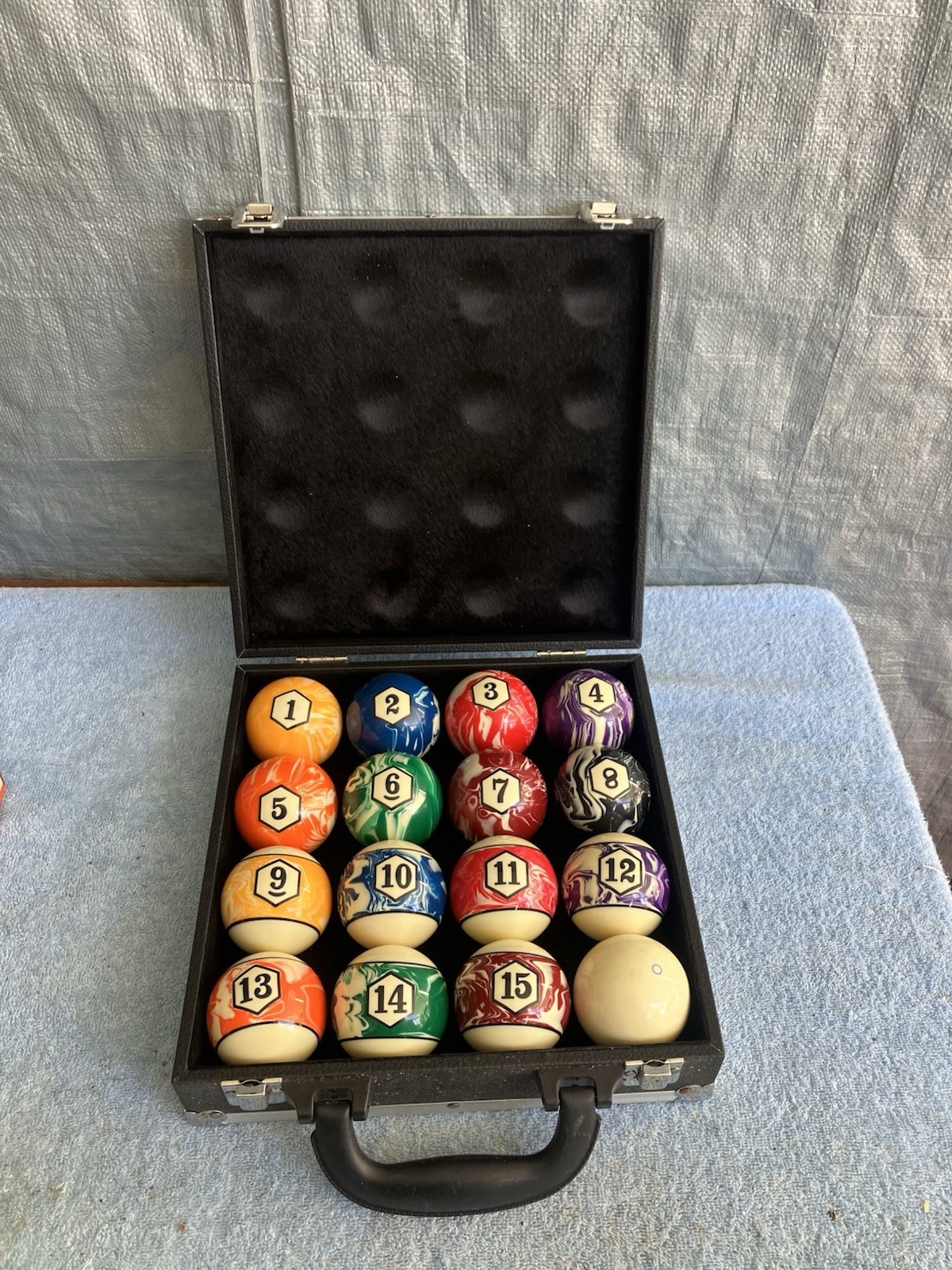 Vintage Marble Swirl Style Billiard Pool Balls Set Carrying Case