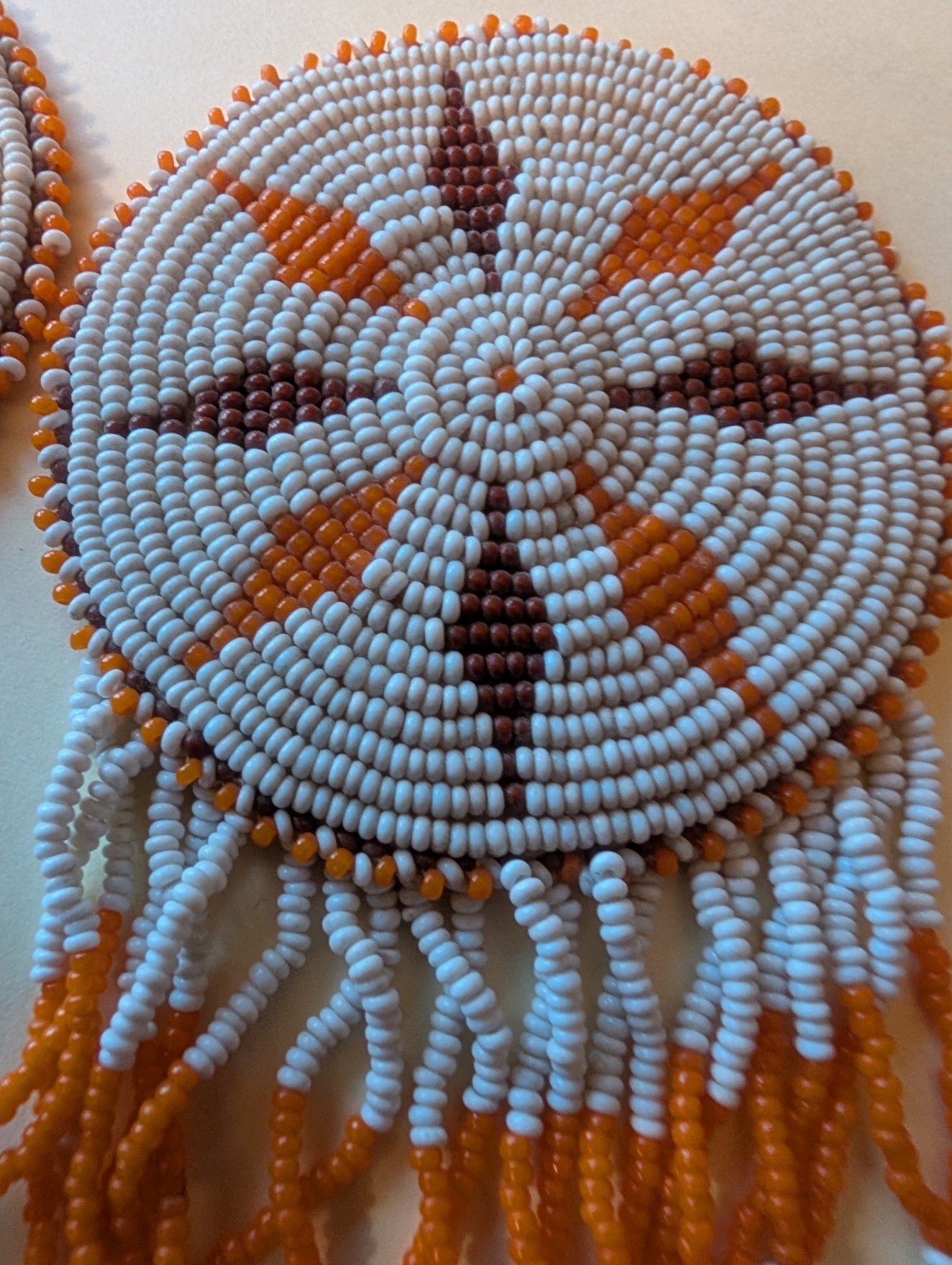как выглядит 2 NATIVE AMERICAN ROUND BEADED MULTI COLORED MEDALLIONS, фото