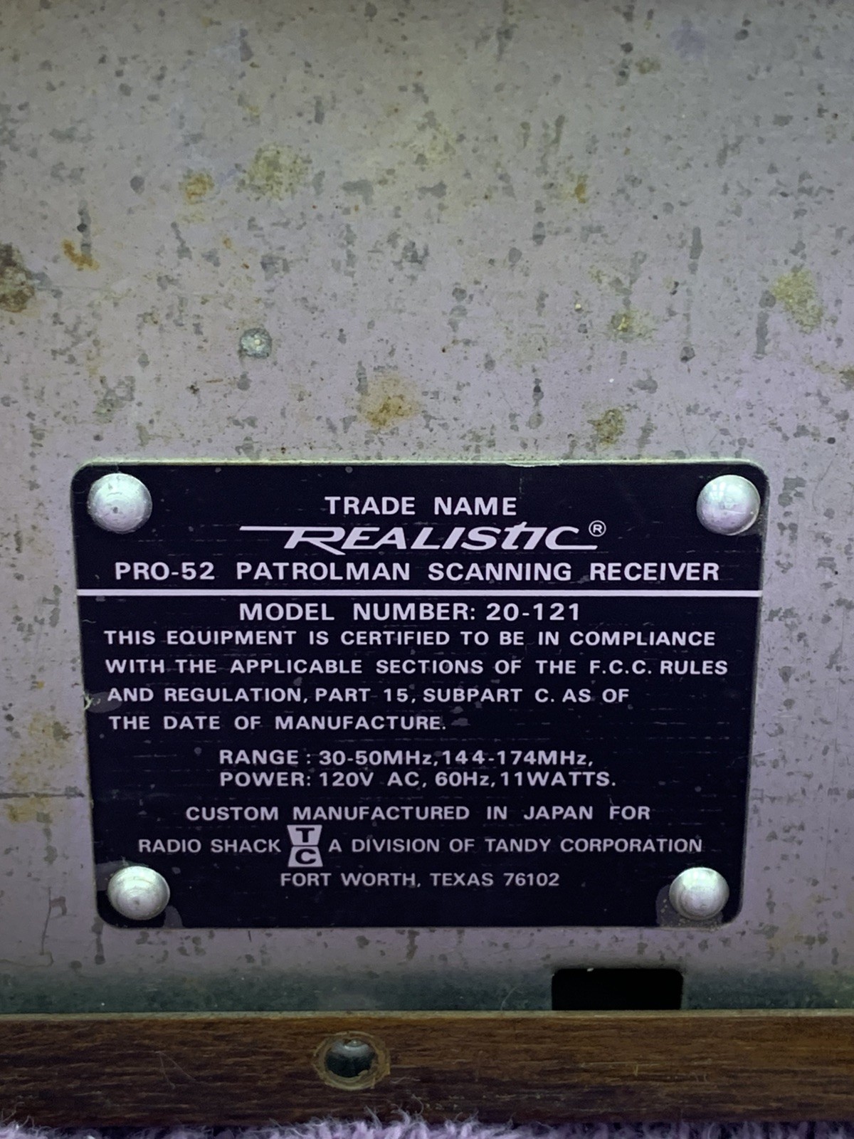 Vintage Realistic PRO-52 20-121 Police Scanner Patrolman Receiver UNTESTED