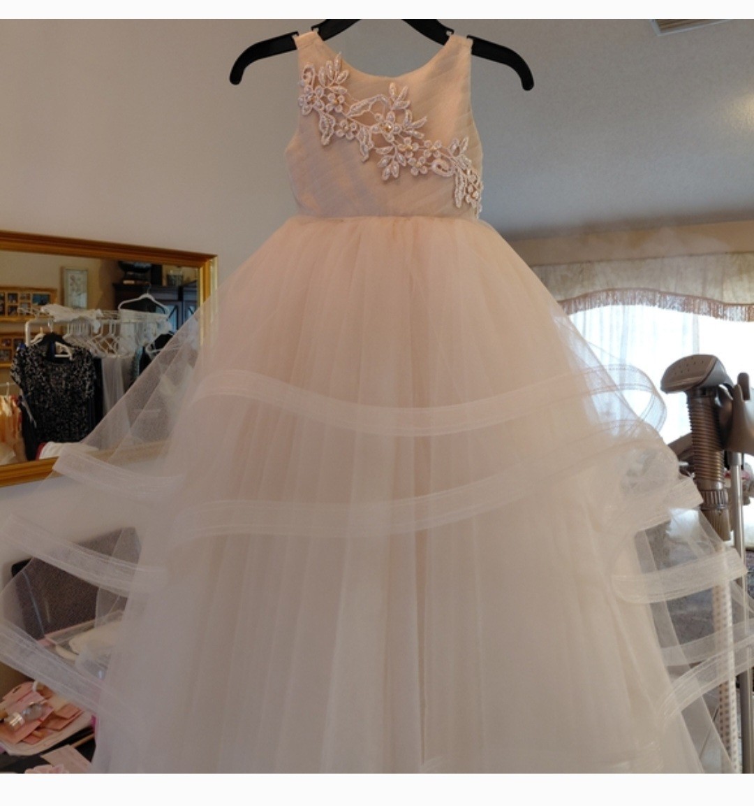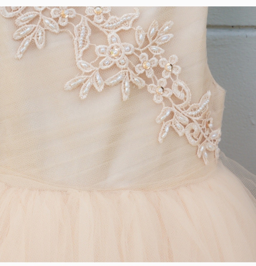 Ivory Tulle Flower Girl Formal Dress with Floral Appliqu and Bow Back