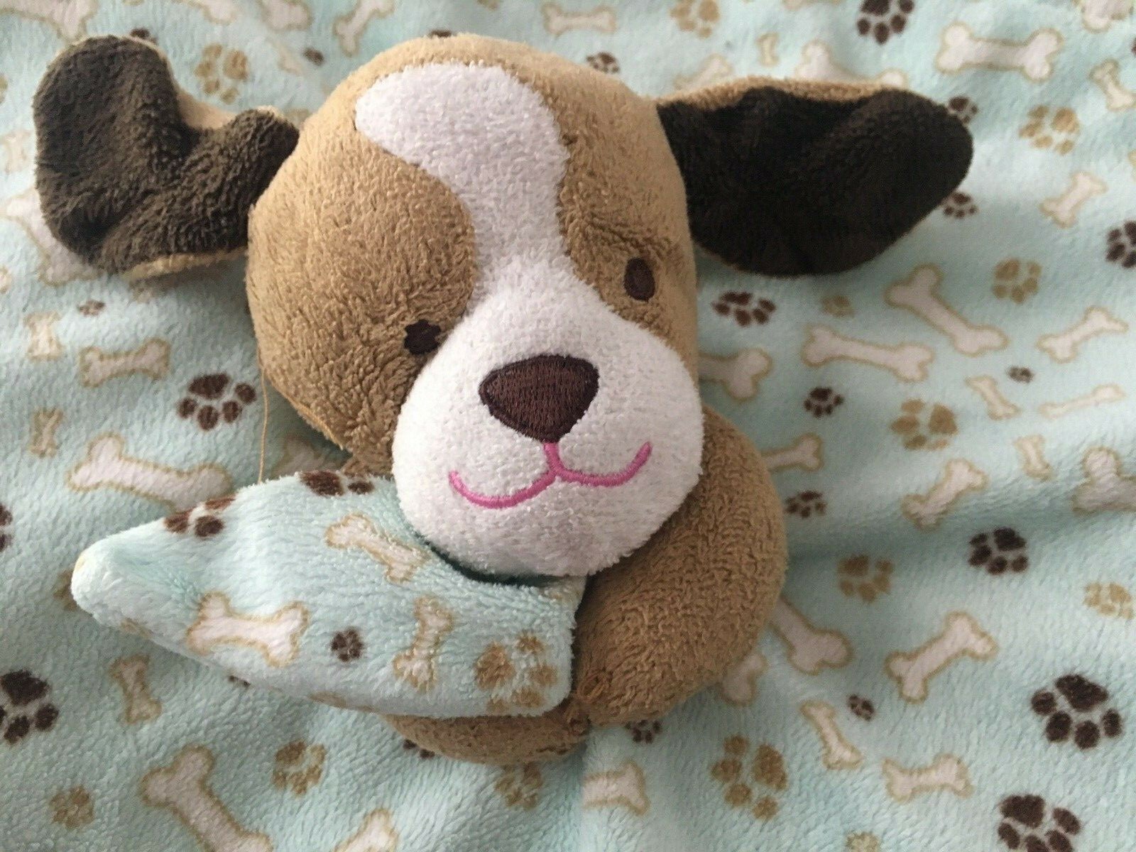 Little Miracles Puppy Dog Lovey Security Blanket Teal Brown Dog Bone Design Soft