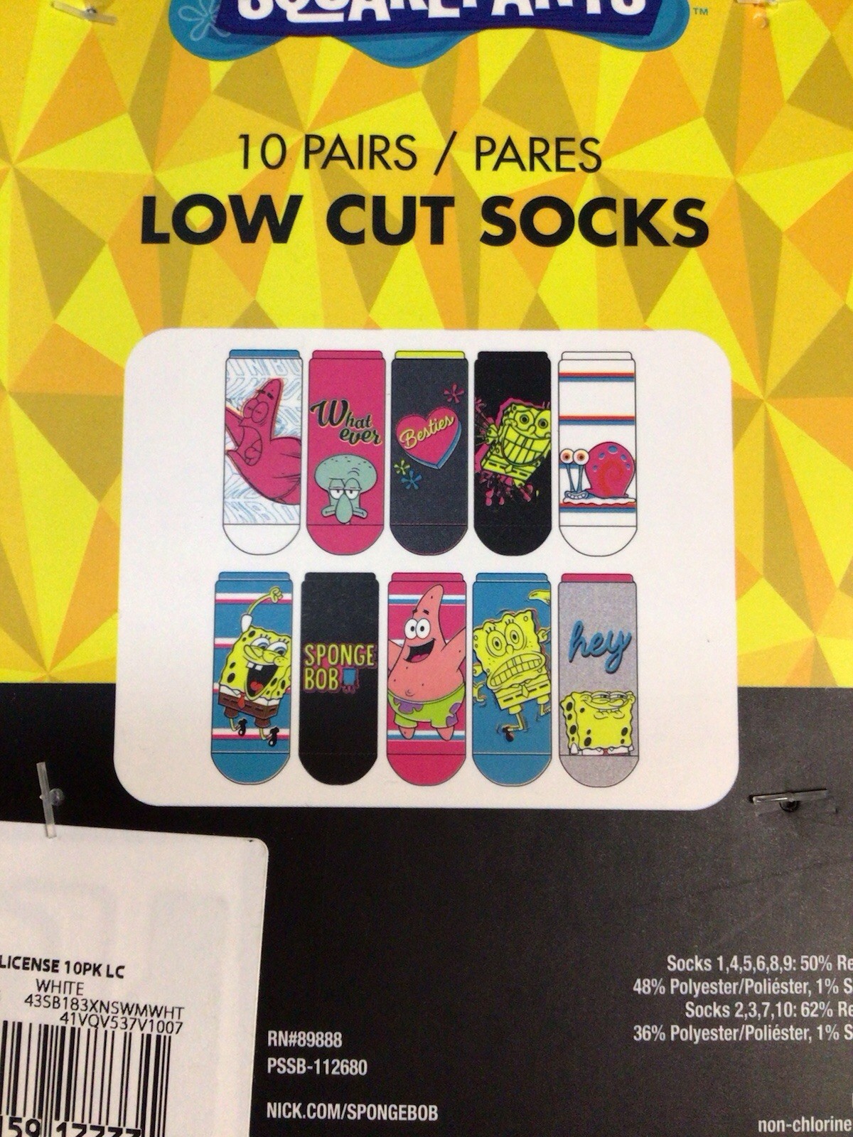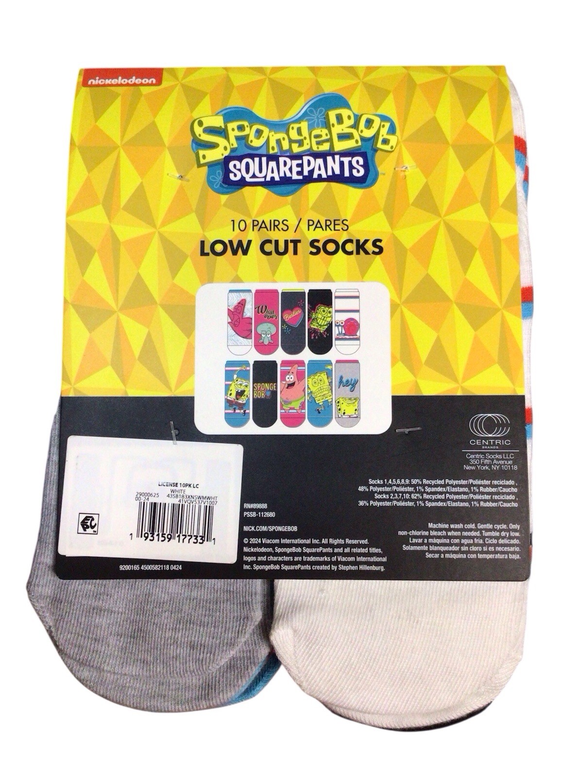 10 NEW Pairs Of Nickelodeon SpongeBob SquarePants Womens Low Cut Socks Size 4-10