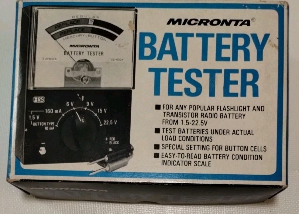 Vintage 1980's Micronta Battery Tester 22-030A Radio Shack Original Box READ