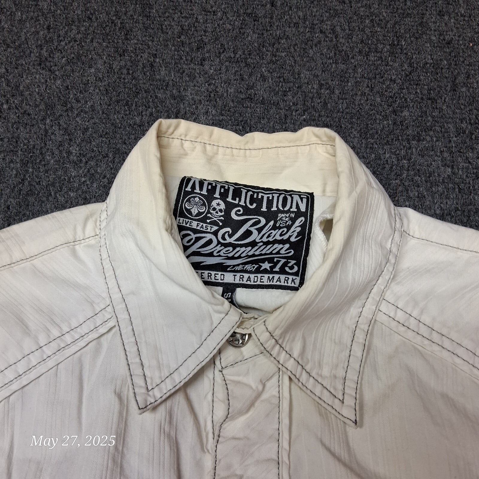 как выглядит Affliction Embroidered T Shirt Size Small White Button Up Y2K фото