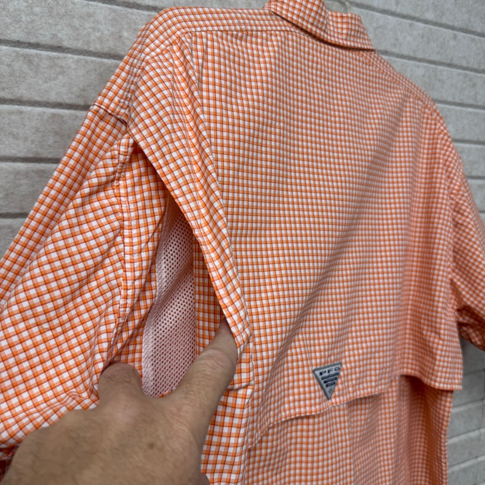 как выглядит Columbia PFG Bahama Short Sleeve Plaid Fishing Shirt Men s L Orange фото