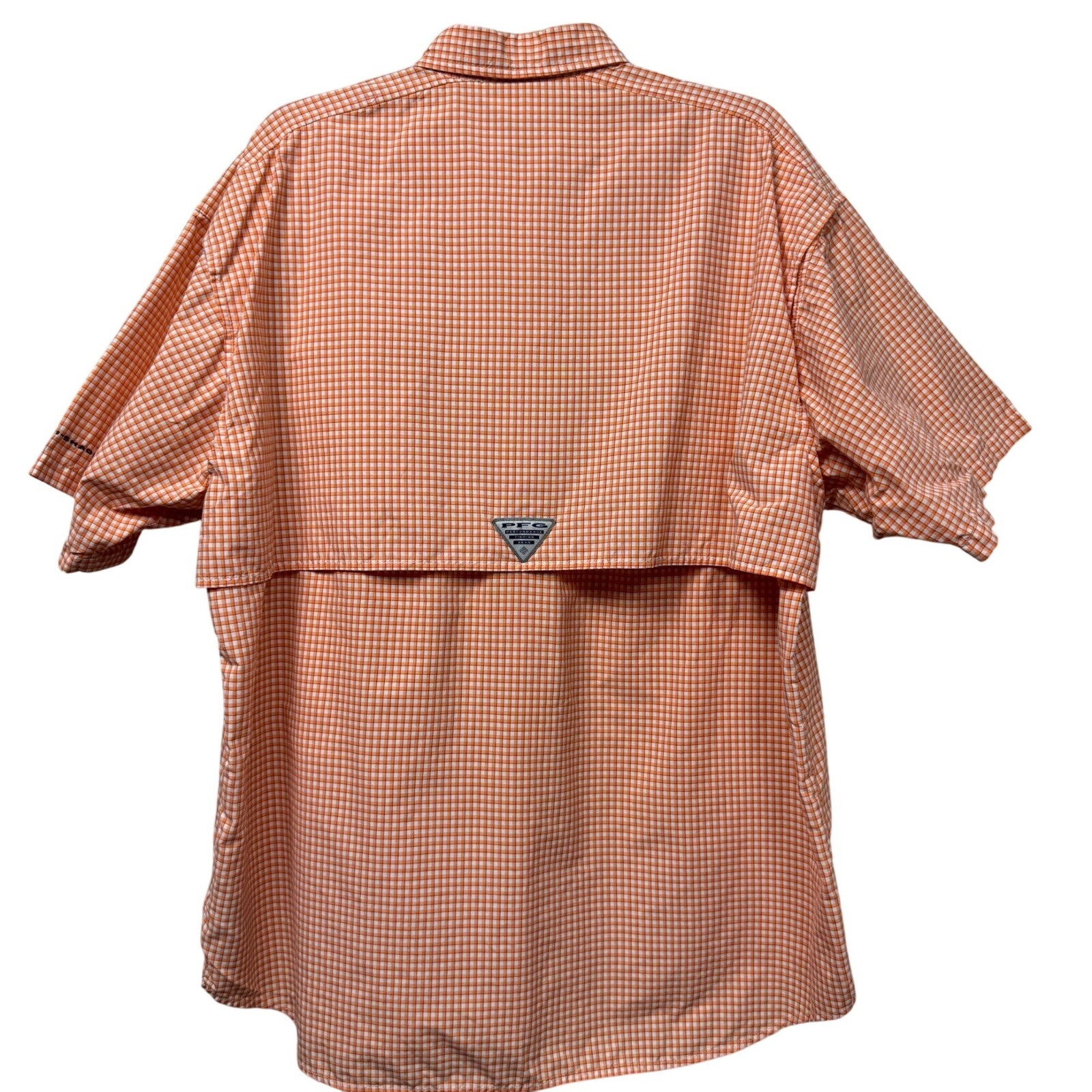Columbia PFG Bahama Short Sleeve Plaid Fishing Shirt Men s L Orange