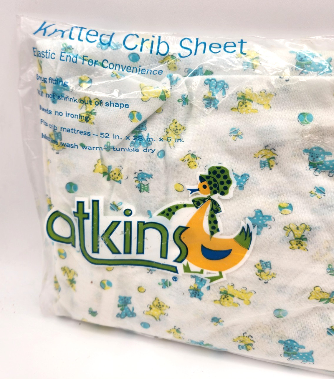 Atkins Vintage Fitted Crib Sheet Lambs Bears Cats Cute Animals 28 X 52 NOS